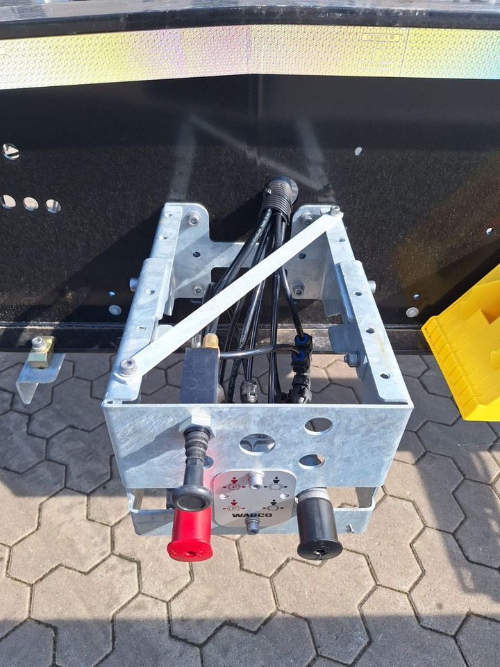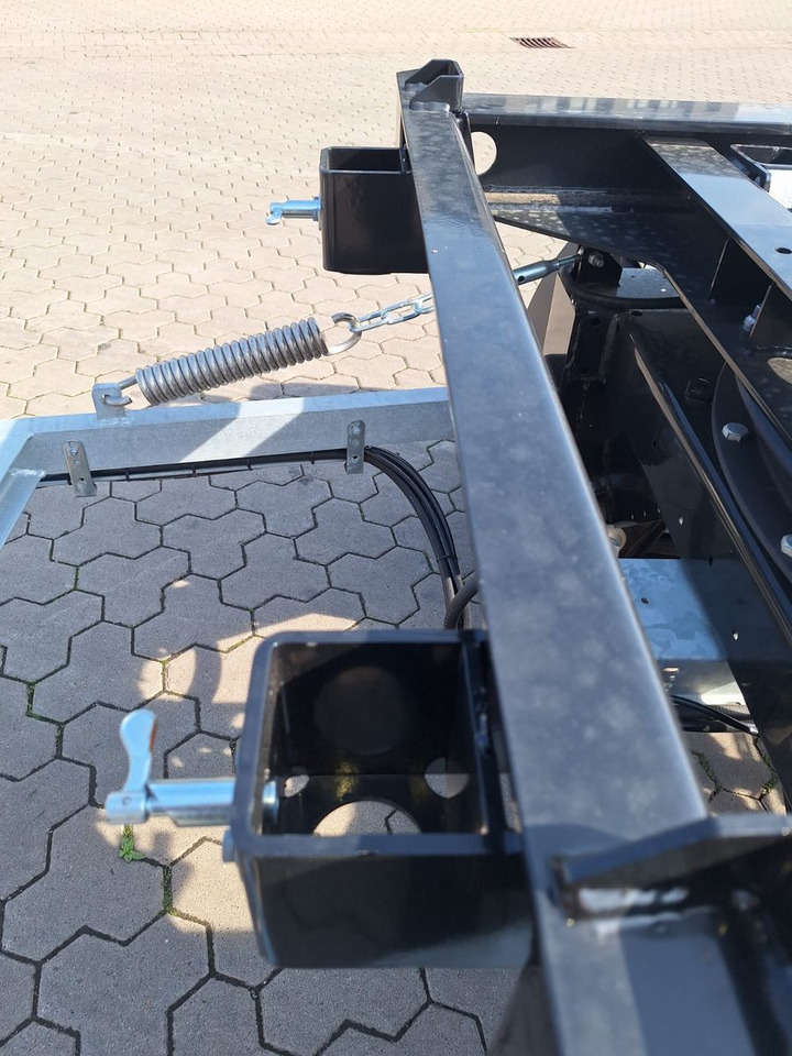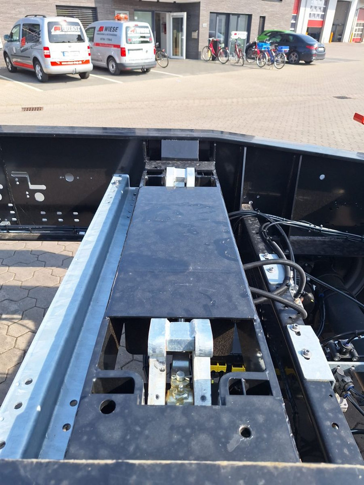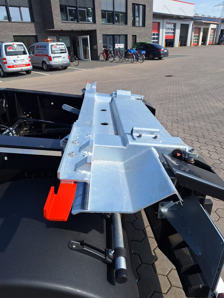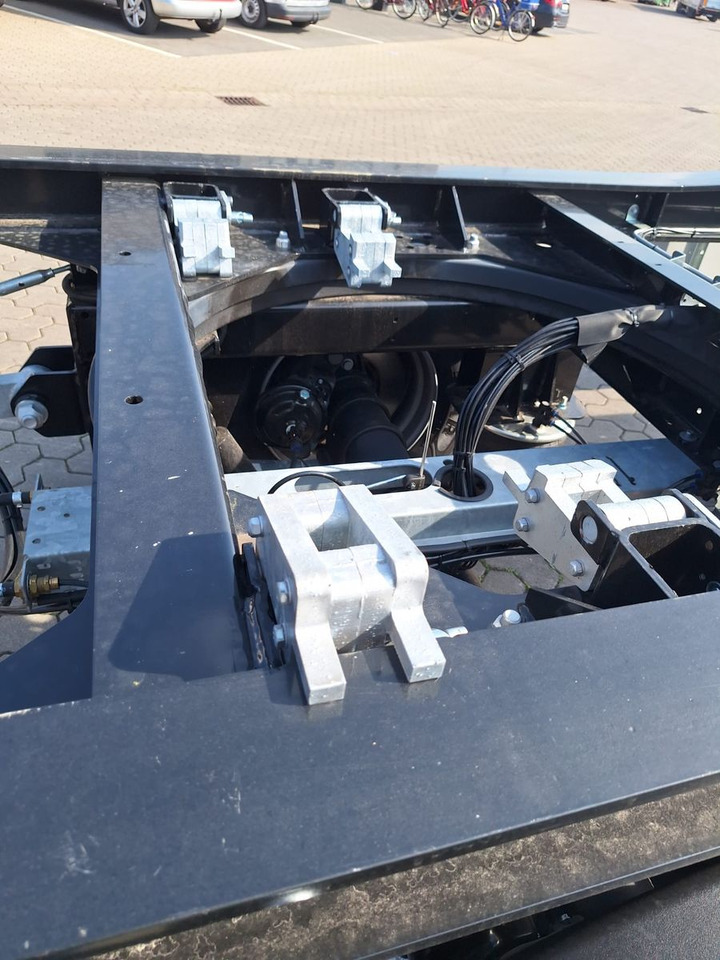 * Zwei Paar spezielle Hakenverriegelungen für Abrollcontainer (pneumatisch bedient) Schlitten rollend gelagert, hinten selbstzentrierend
