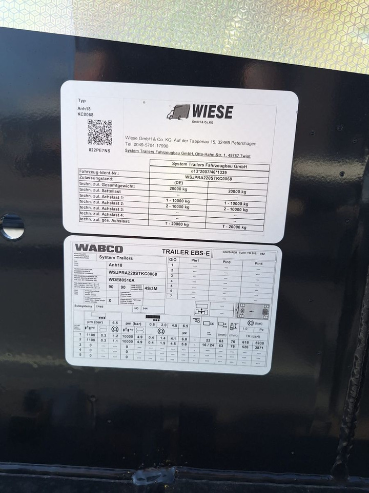 * Achslasten: 20 000 kg (2 x 10000 kg)