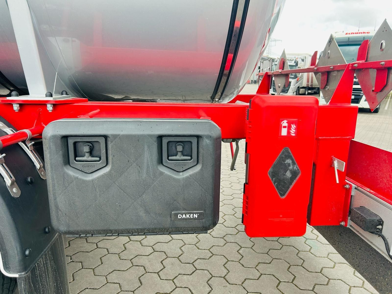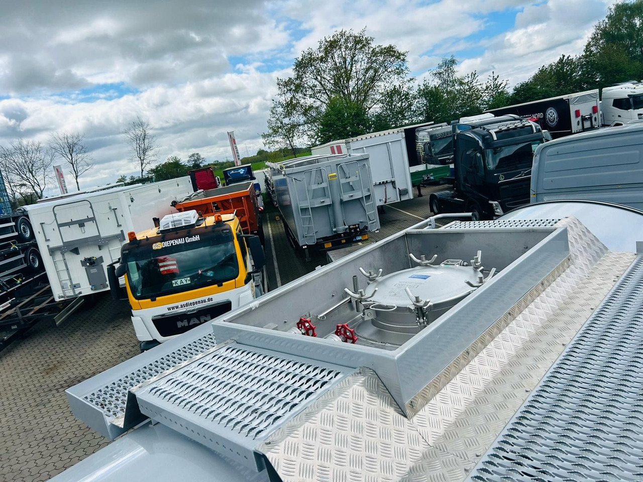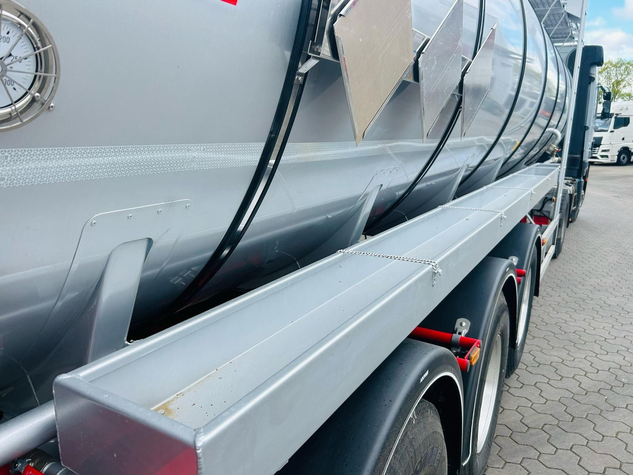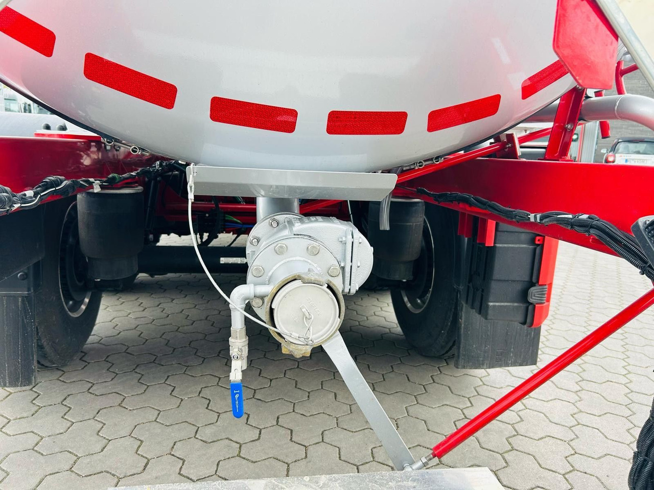 * An der Auslaufleitung befindet sich ein DN100 Bodenventil mit Handradbetätigung, gemäß der Norm EN 14433 für Gefahrgüter.
