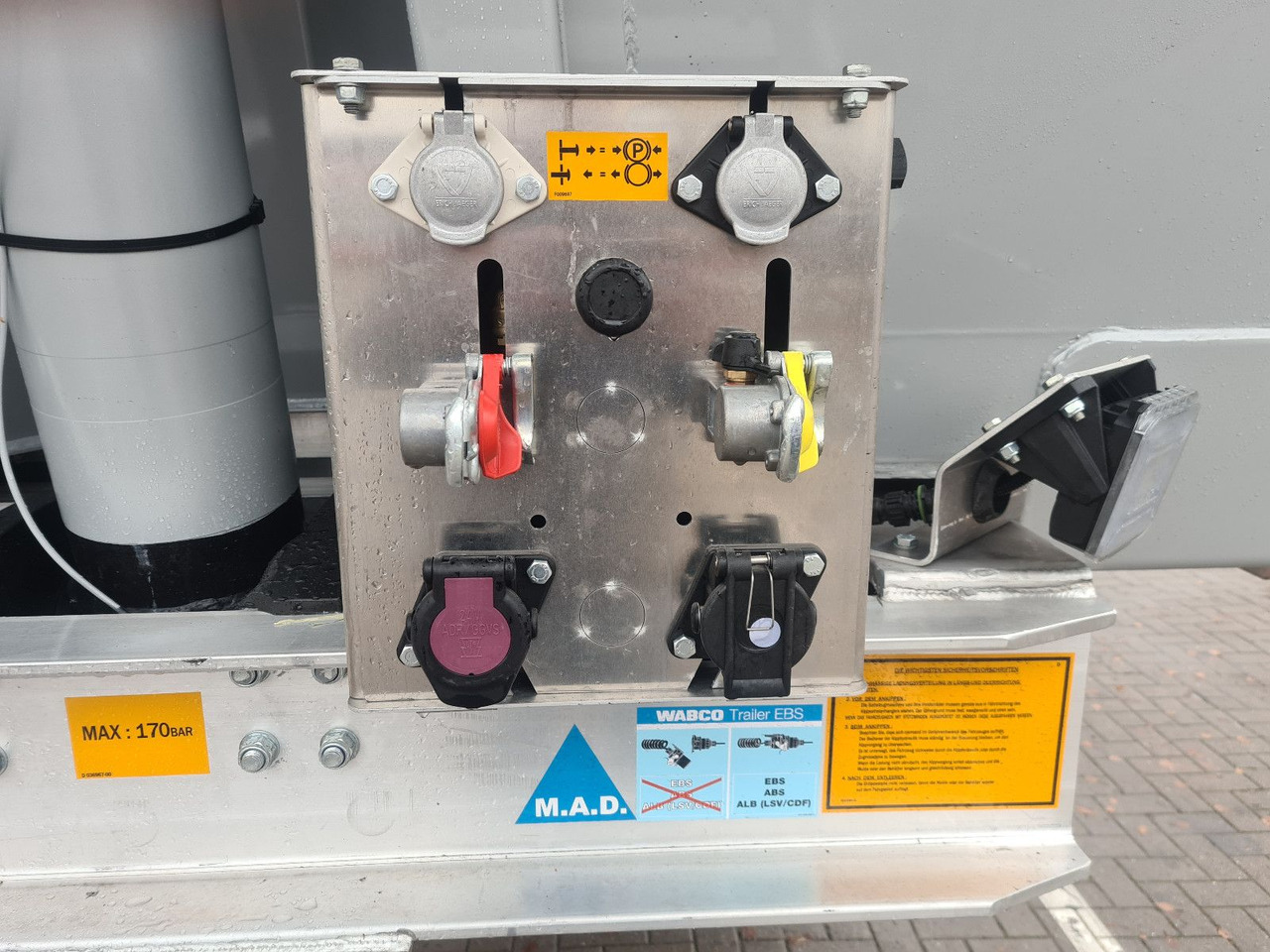 Das Fahrzeug besitzt 3 Achsen. Das Gesamtgewicht beträgt 36000 Kg.