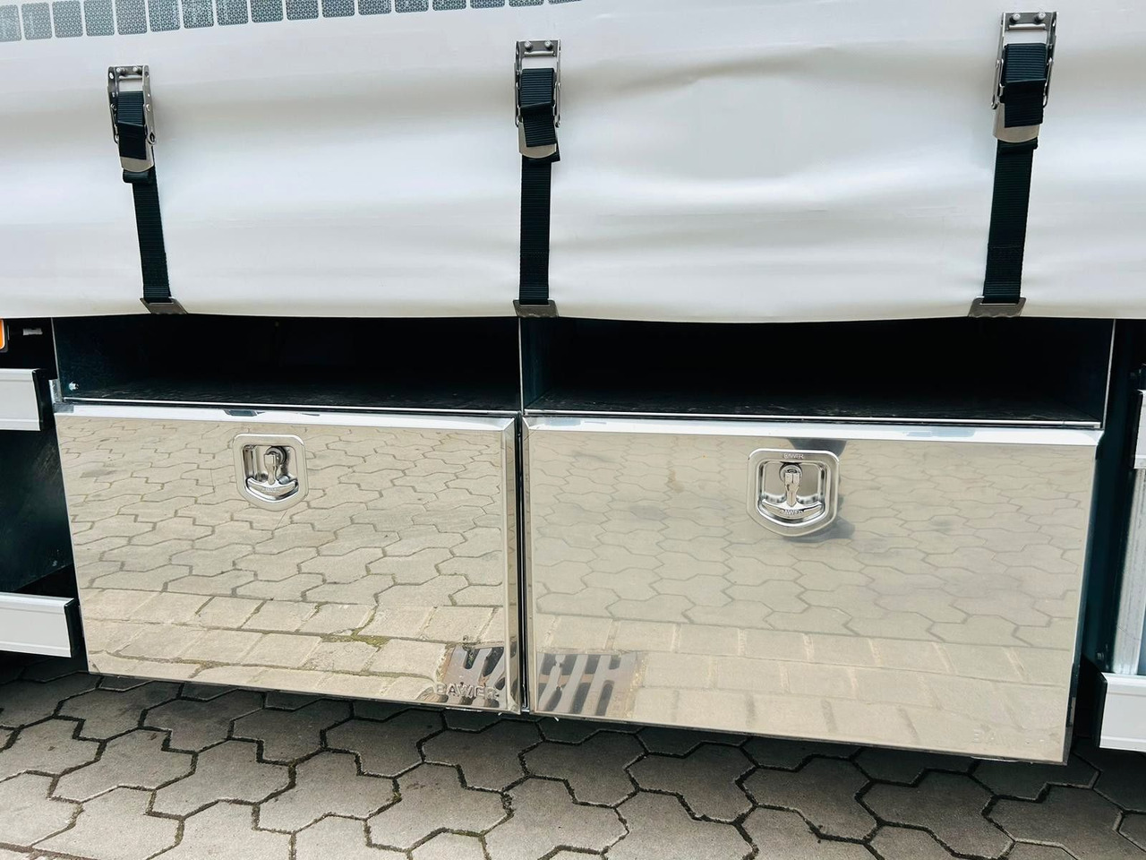 **Aufbau in Curtainsiderausführung mit Schwerlast-Ladebordwand.
