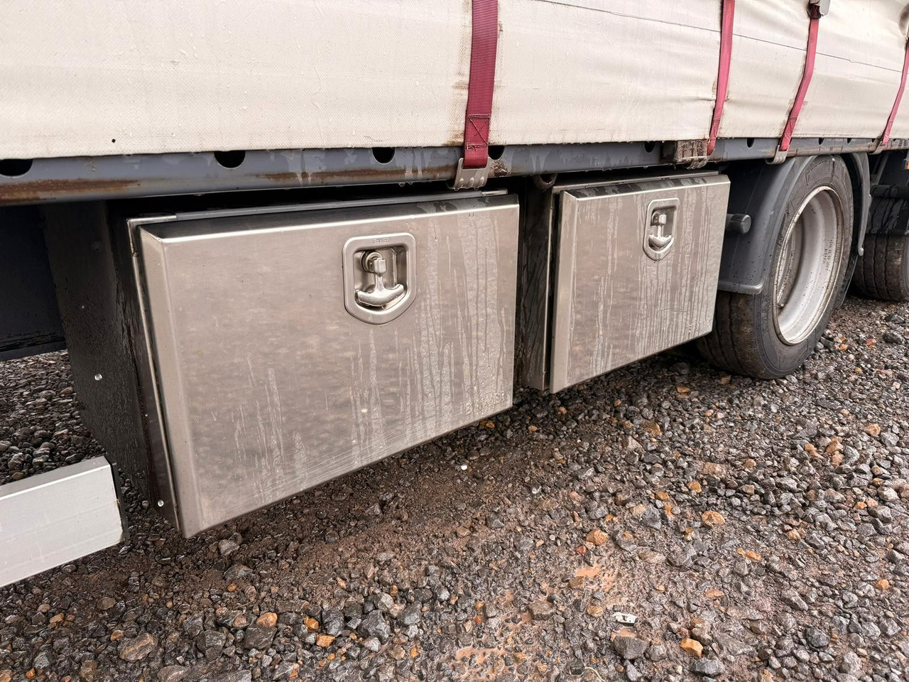 * Unterlegkeile und seitliche Edelstahl-Staukisten mit versenkten Schlössern.