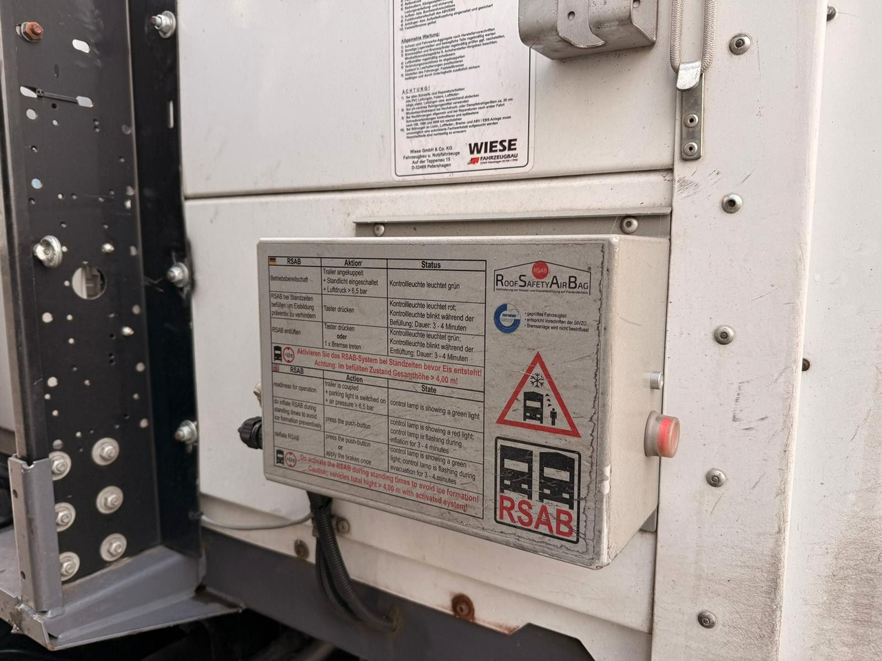 **Fahrzeugtyp*** Wiese Gabelstaplertransporter mit Schiebeplanenaufbau, Hubdach und Nachlauflenkachse.