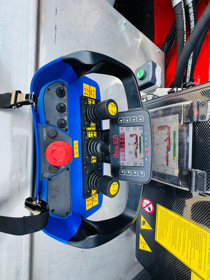 Beleuchtung: • 1 x LED AS, jeweils 1x am Knickarm und 1x am Fly-JIBmontiert. • 4 x LED- (seitlich 1 x je Abstützung) • 2 x LED-AS integriert in der Stirnwand • 2 x LED unter dem Aufbau am Heck jeweils Links und Rechts; Anordnung nachAbsprache. • 4 x gelbe LED- Leuchtbänder, jeweils 1x an jeder Stützemontiert. • Blitzleuchten vorne und hinten - je 2 Stück