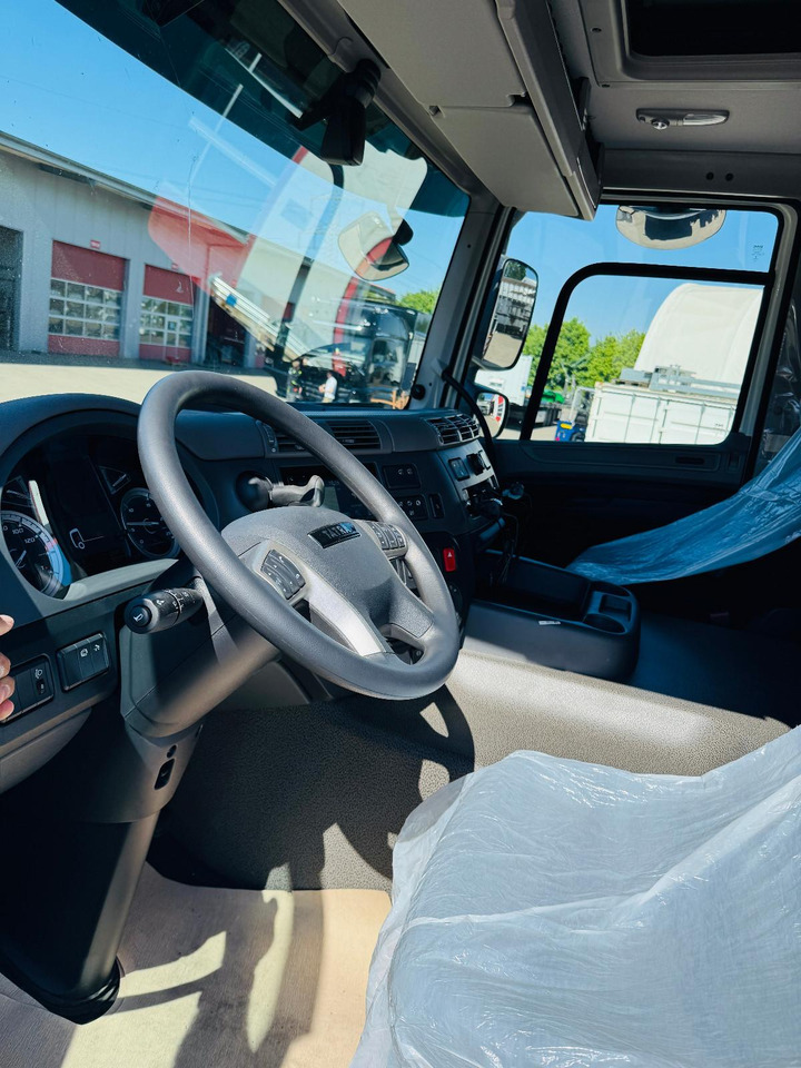 Der abgelesene Kilometerstand beträgt 500. Die Außenfarbe ist Weiß. Das Fahrzeug besitzt 4 Achsen. Das Gesamtgewicht beträgt 26000 Kg. Die Leistung des Motors beträgt 499 PS.