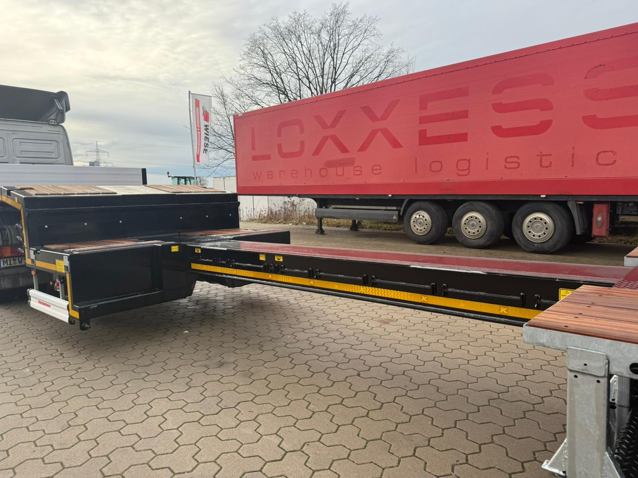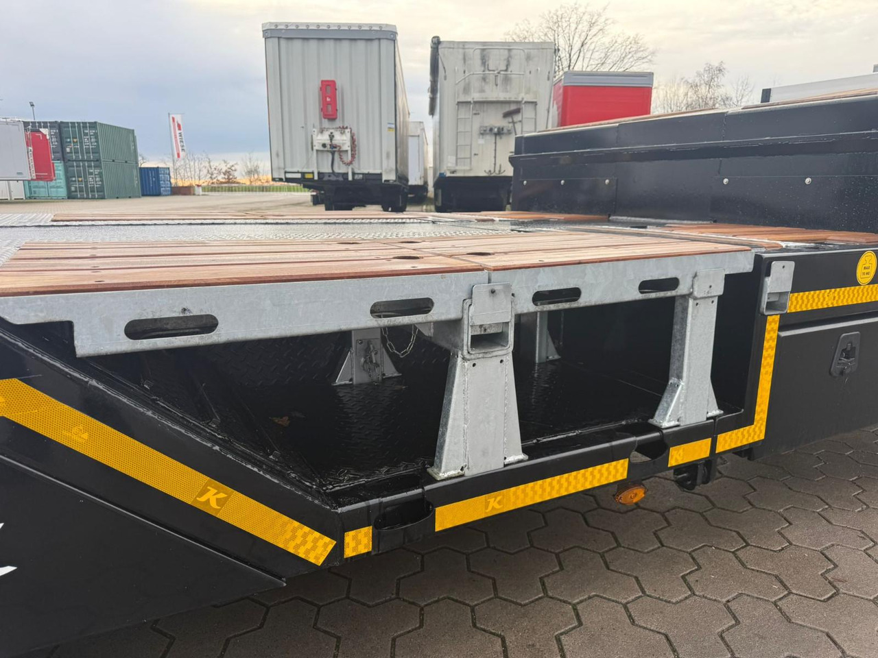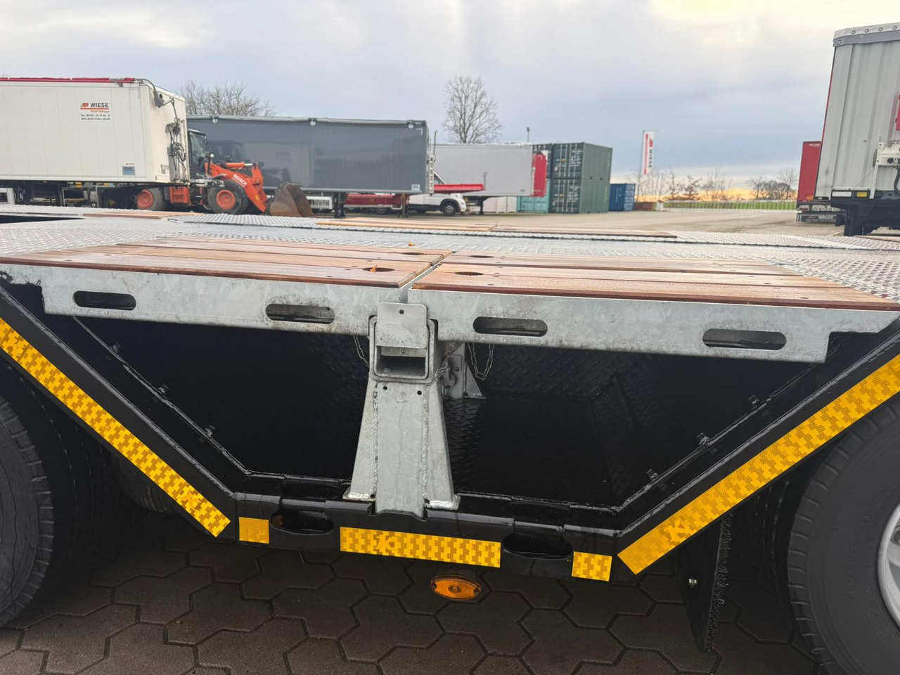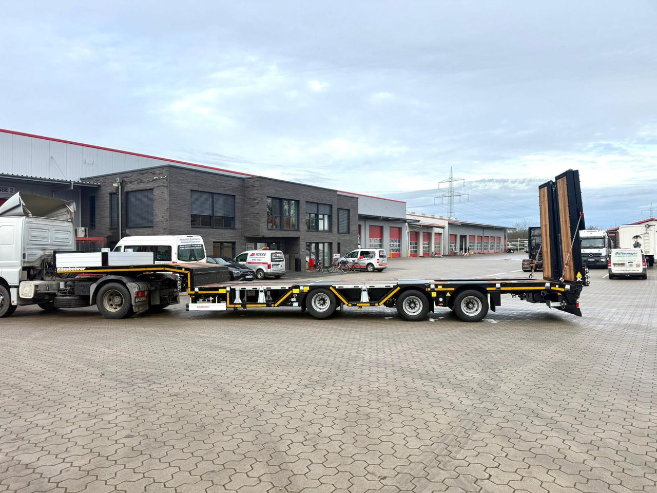 * **Typ:** Ausziehbarer Reifenmulden-Tiefbettauflieger, geeignet für den Transport von Fahrzeugen und schweren Maschinen.