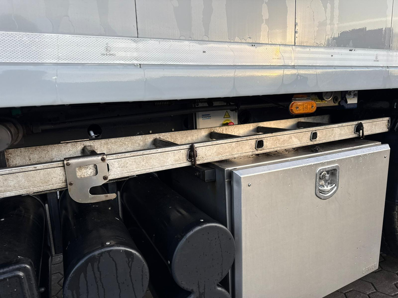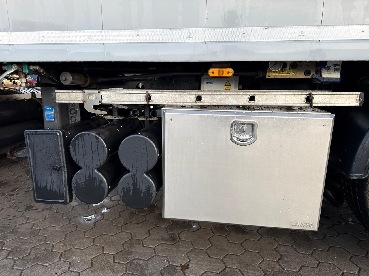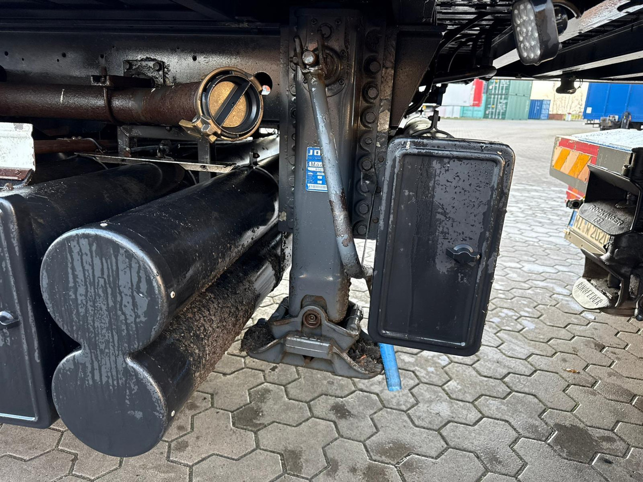 Das Fahrzeug besitzt 3 Achsen. Das Gesamtgewicht beträgt 36000 Kg.