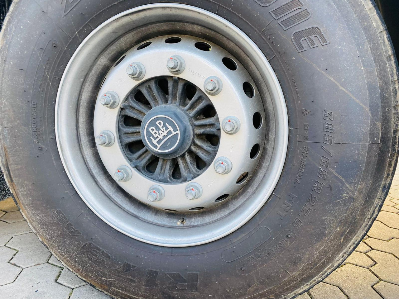 Das Fahrzeug besitzt 3 Achsen. Das Gesamtgewicht beträgt 45000 Kg.
