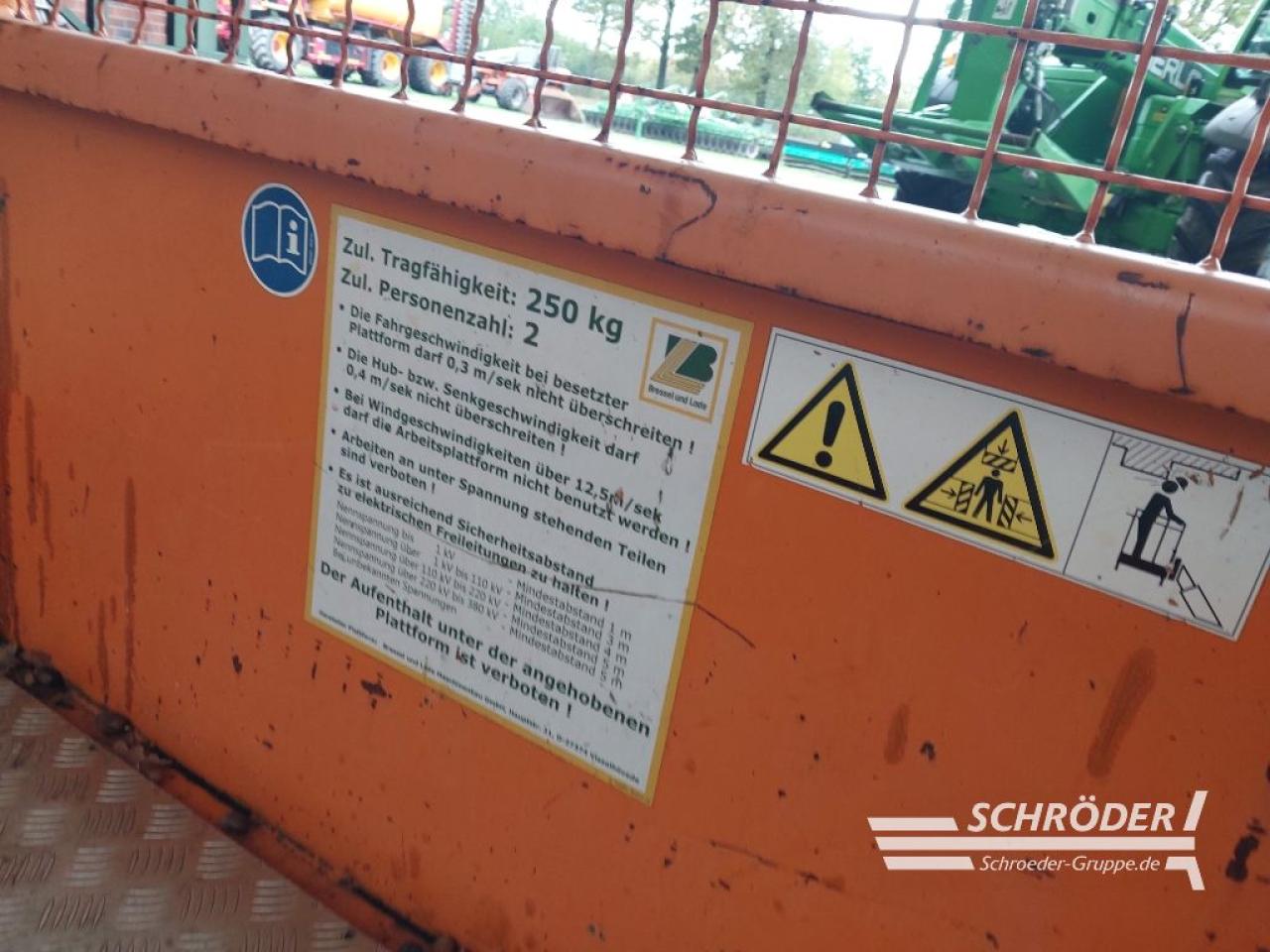 für Teleskoplader / Merlo ZM 2/3 komb., Breite: 1.300 mm, Tiefe: 860 mm, Tragkraft 250 kg, Dosenlibelle, 2 Anleinpunkte, zugelassen für 2 Personen, Farbe: RAL 2011, Direktanbau, Aufnahme: Rad-/Tele Merlo ZM 2/3 komb., aufgesetzter Kantenschutz