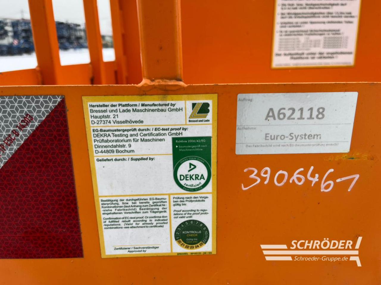 für Frontlader / Euro-System, Breite: 1,30 m, Tiefe: 0,86 m, Tragkraft: 250 kg, Dosenlibelle, Anleinpunkte, zugelassen für 2 Personen, aufgesetzter Kantenschutz, Aufnahme: Euro, Farbe: RAL 2011