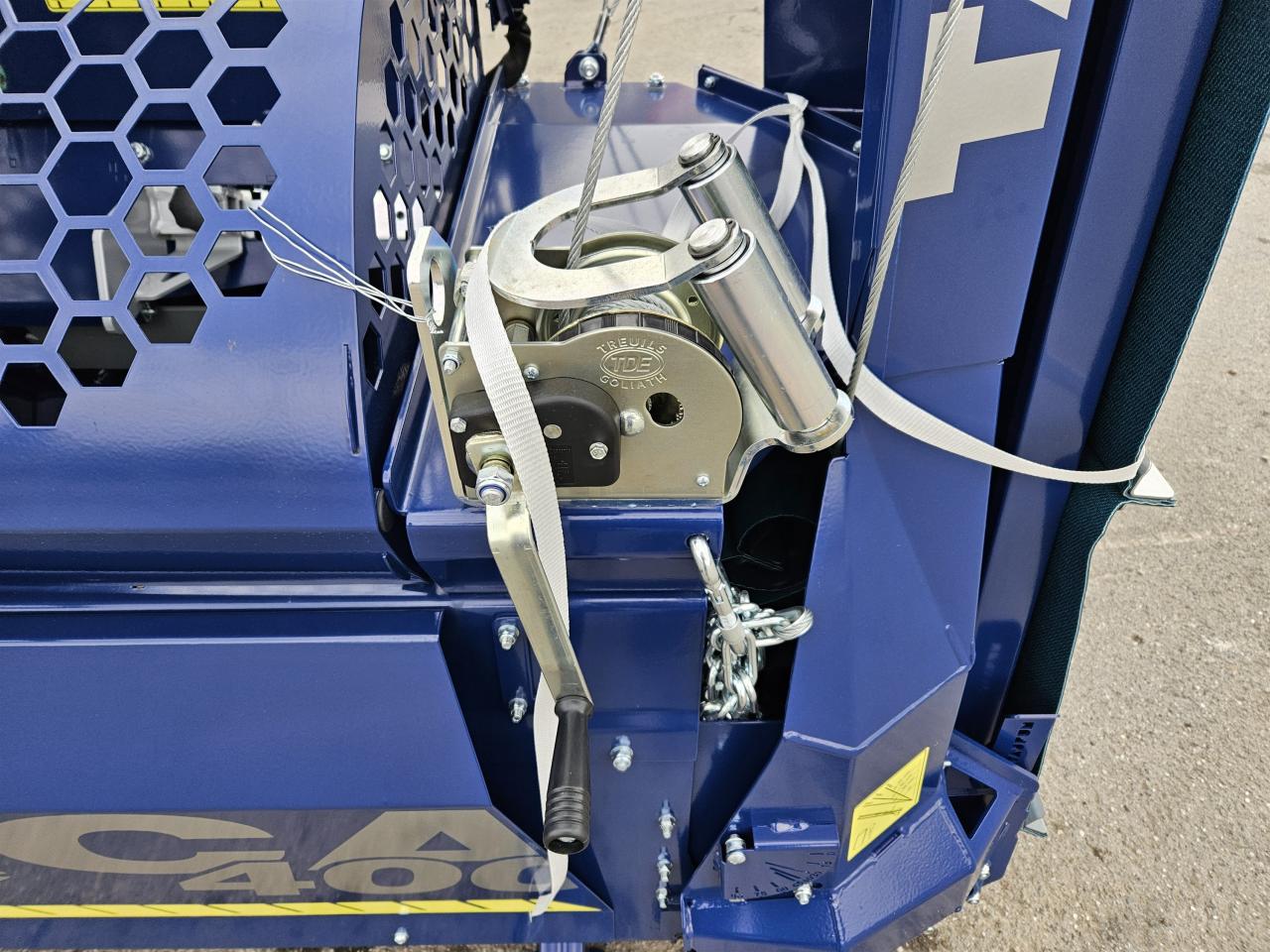 neu, mit Zapfwellenantrieb und schwenkbarem Förderband, 30° (+/- 15°), Sägespalter, 2 Spaltgeschwindigkeiten (Auto-Speed), Vorschubband, hydraulischer Längenbegrenzer, hydraulischer Niederhalter, Ölkühler, Spaltmesser für 4 Teile, Schnelllaufzylinder, Joystickbedienung (9 Funktionen), Gelenkwelle Weitwinkel Walterscheid GW-RCA (beidseitig), 3-teiliges Teleskop-Förderband mit automatischer hydraulischer Bandspannung und doppelwirkendem Zylinder, stufenlos einstellbare Fördergeschwindigkeit, Antrieb mit doppelter Lagerung, Werkzeugkiste mit Schraubendreher zur Kettenspannung, Sägekette wird per Kupplung, geschalten und läuft nur beim Sägen, 2 Abwurfklappen