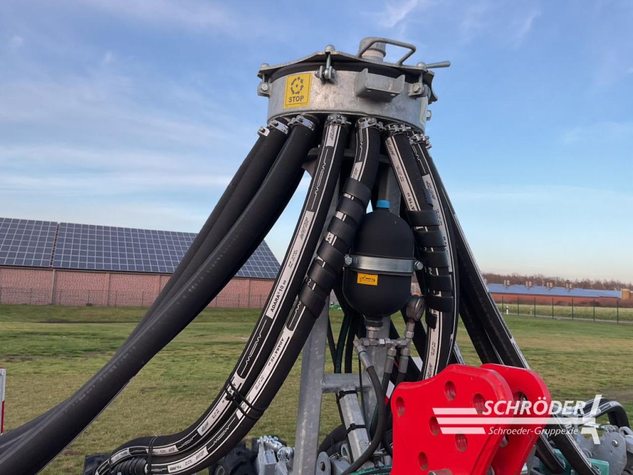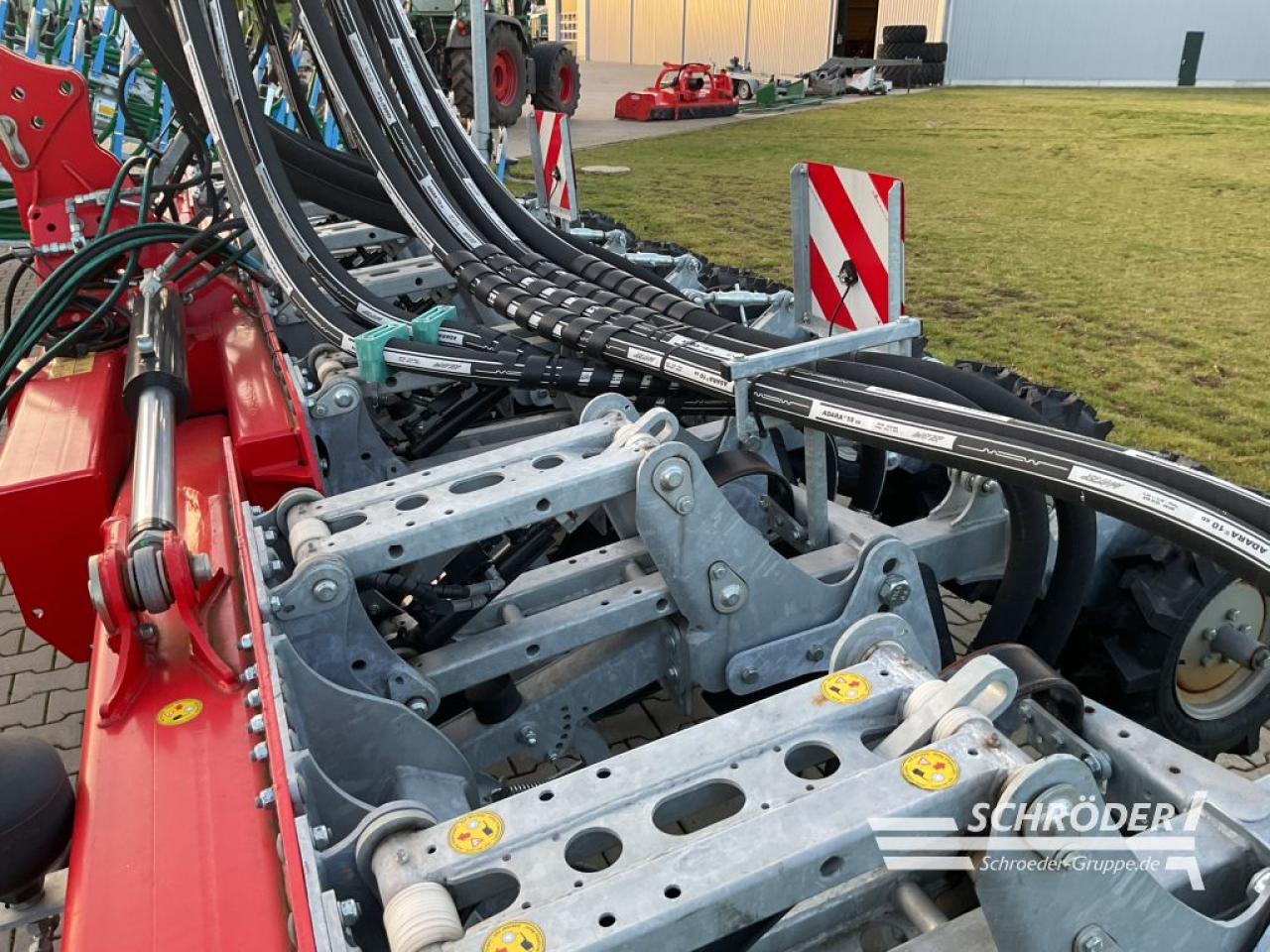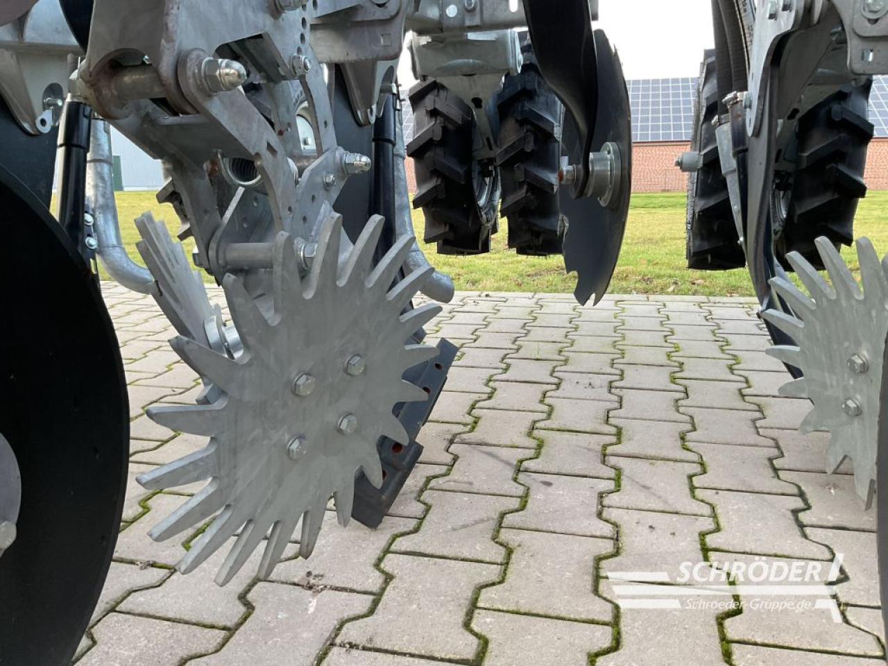 75 cm Reihenabstand, hydraulische Steinsicherung, 8-reihig mit 16-fachem Verteilkopf Kaweco, Tasträder (3x) zur Höhenführung, je einem Scheibensech pro Reihe, 2 Räumsterne pro Reihe, pro Reihe 1 Parabelschar inklusive Gülleeinbringeinheit, nachfolgend 2 Andruckrollen mit AS Profil, inklusive Warntafeln mit LED-Beleuchtung