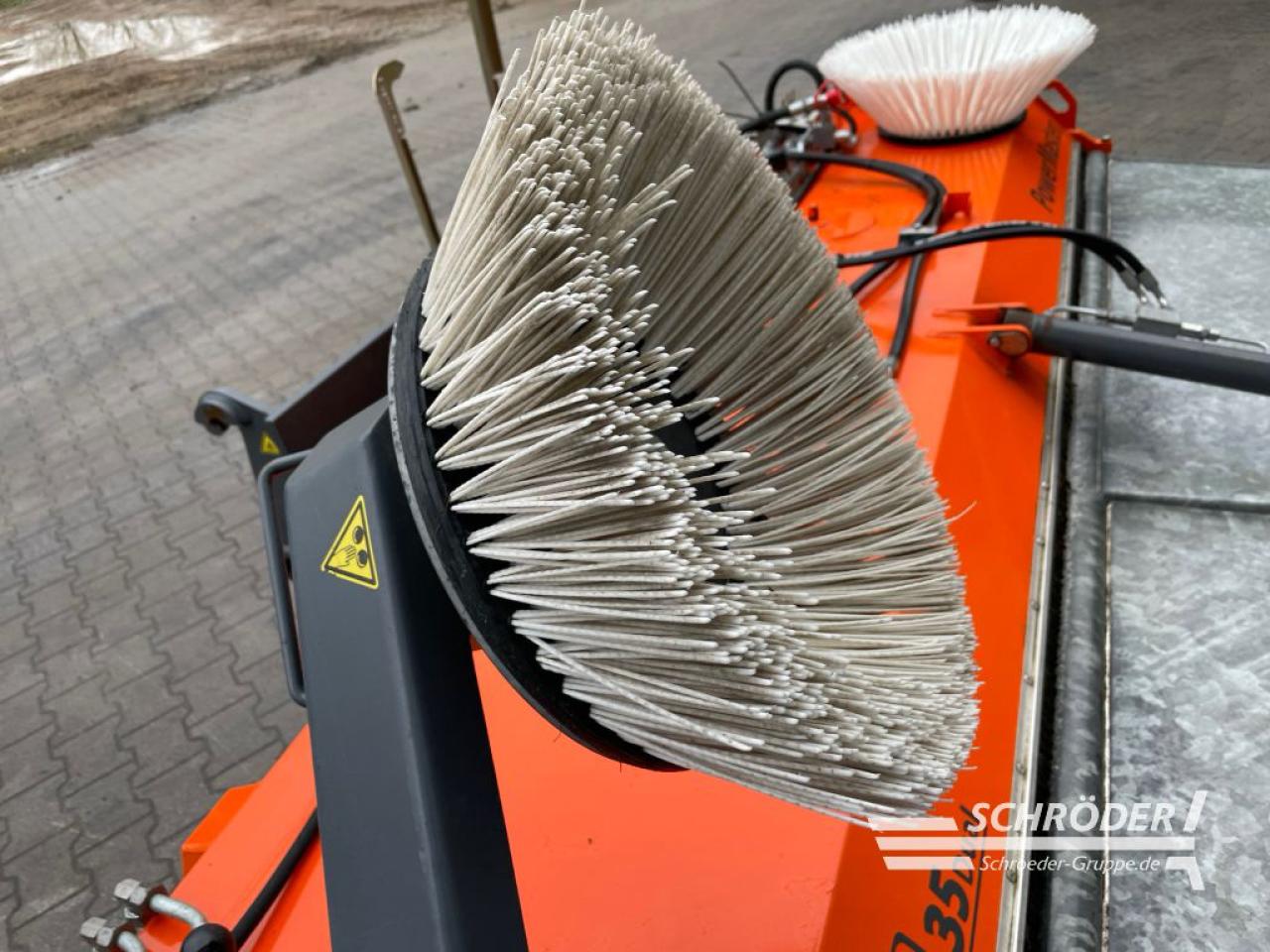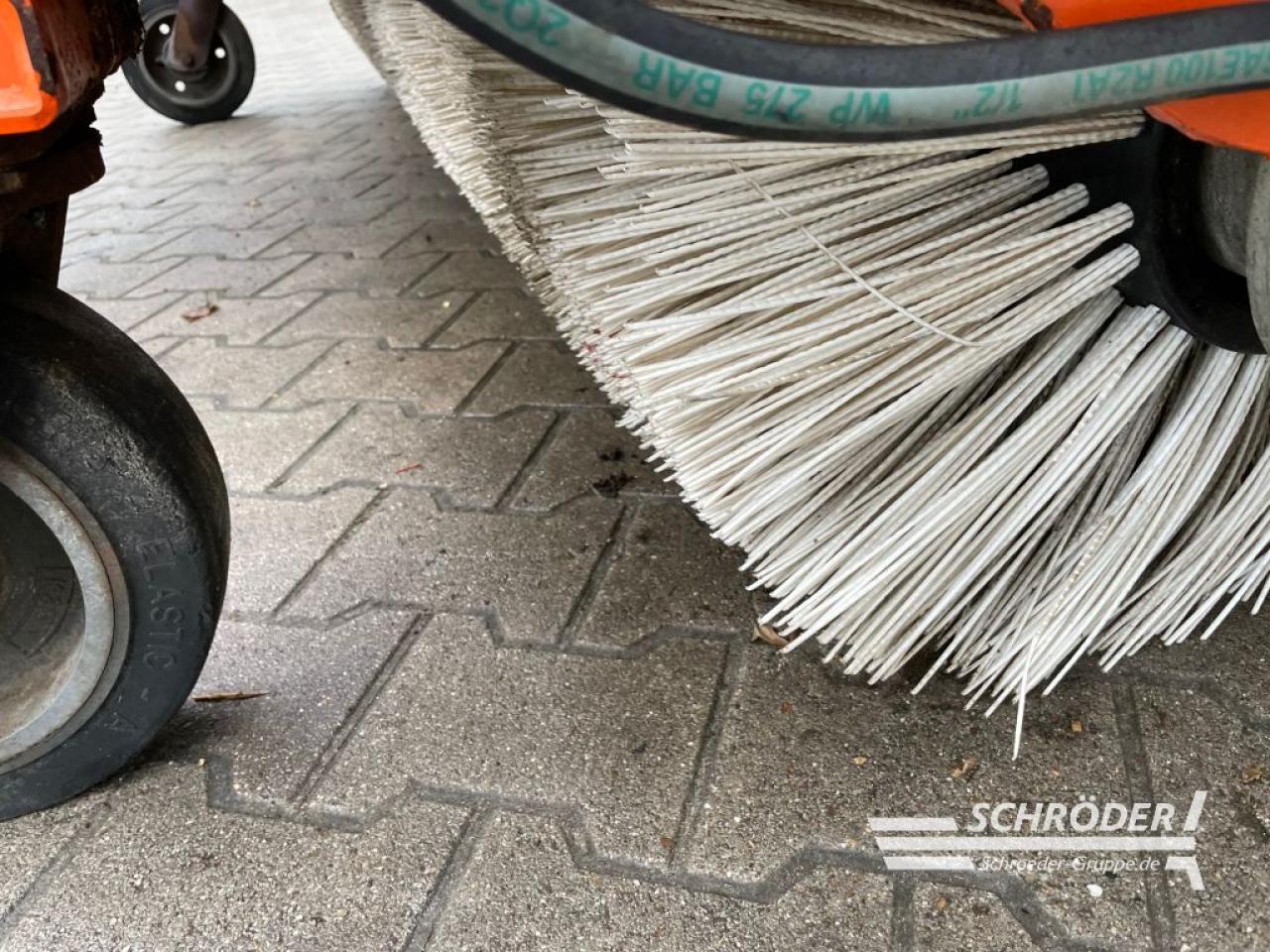 mechanische Schwenkeinrichtung, Kehrwalze Ø 700 mm PPN-Besatz, Antrieb hydraulisch, starker Gerotormotor mit Antriebswelle, Ø 32 mm (schwere Baureihe, komplett innenliegend; Breite über 2300 mm mit 2 Motoren), Hydroblock enthält alle hydr. Steuerungs- und Sicherungselemente, (Überdruckventil, Nachlaufsicherung der Kehrwalze, Umschaltventil für , Schmutzsammelwanne, Anschlussmöglichkeiten für Seitenkehrbesen), Hydraulik-Anschlussstecker SVK Gr. 3, Super-Elastiklaufräder Ø 300 x 90 mm (schienenfest), Schlauchgarderobe, Halterung für Hydraulikschläuche, Abstellstützen und Verladeösen, Serienlackierung bema orange, CE Kennzeichnung mit Betriebsanleitung, Radladeranbau mit Rollenniveauausgleich Trägerfahrzeug JCB 409, Schmutzsammelwanne hydraulisch, verzinkt, mit Tastrad Ø 300 x 90 mm, Seitenbesen hydraulisch Ø 600 mm, rechts, , mit bema SideControl (Drei-Wegehahn & Drehzahlregler) PPN-Besatz, Stromregelventil ab 80 bis 140 l/min., Hinweis: Gebrauchtmaschinen verkaufen wir ausschließlich an Gewerbetreibende und ohne Garantie!