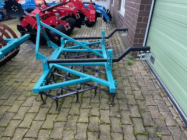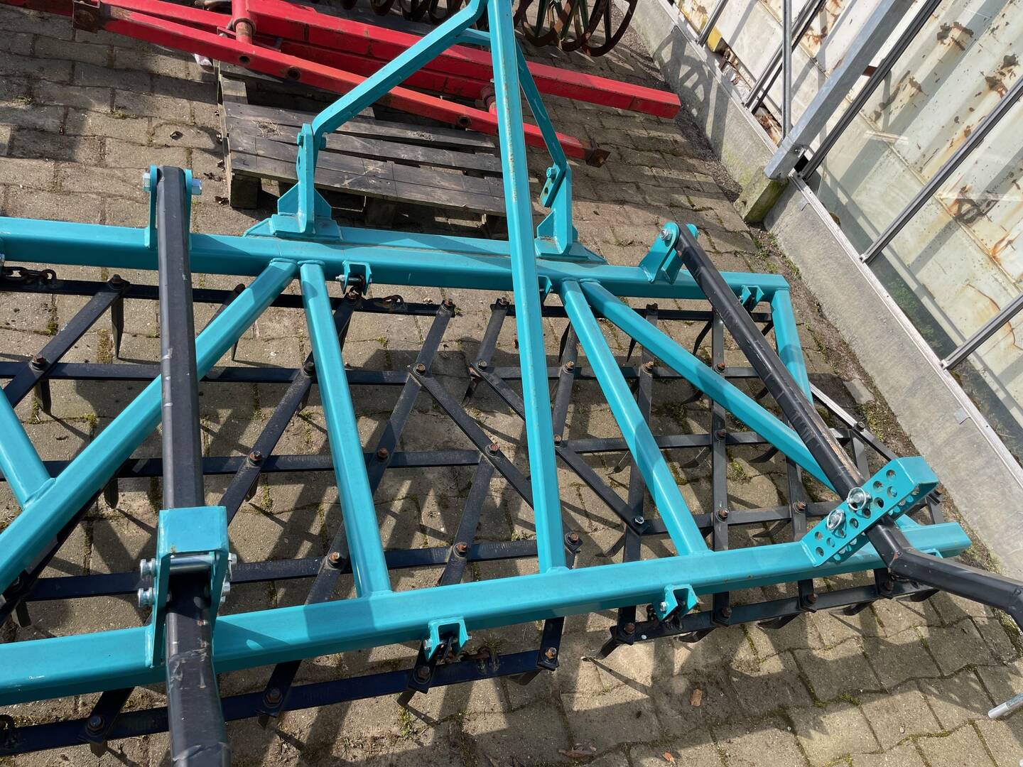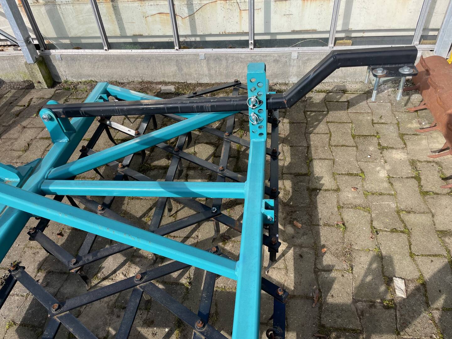 - Zwei Eggenfelder mit je 25 200mm langen Zinken pro Feld pendelnd aufgehängt an verzinkten Nussketten