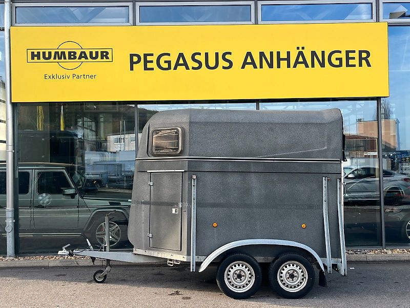2-Pferdeanhänger Pferdetransporter Viehanhänger Vollpoly Holzboden EZ: 02.05.1996 HU: 11/2026 Gesamtgewicht: 2000 kg Leergewicht: 710 kg Nutzlast: 1290 kg Gesamtmaße: 4450mm x 2200mm x 2700mm Innenmaße: 3260mm x 1650mm x 2300mm Seitentrittschutz Mitteltrennwand mit Boxenstangensystem Seitenfenster links und rechts Einstieg rechts V-Deichsel Stahlfelgen Planenrollo rutschfeste Verladeklappe Automatikstützrad Rangiergriff