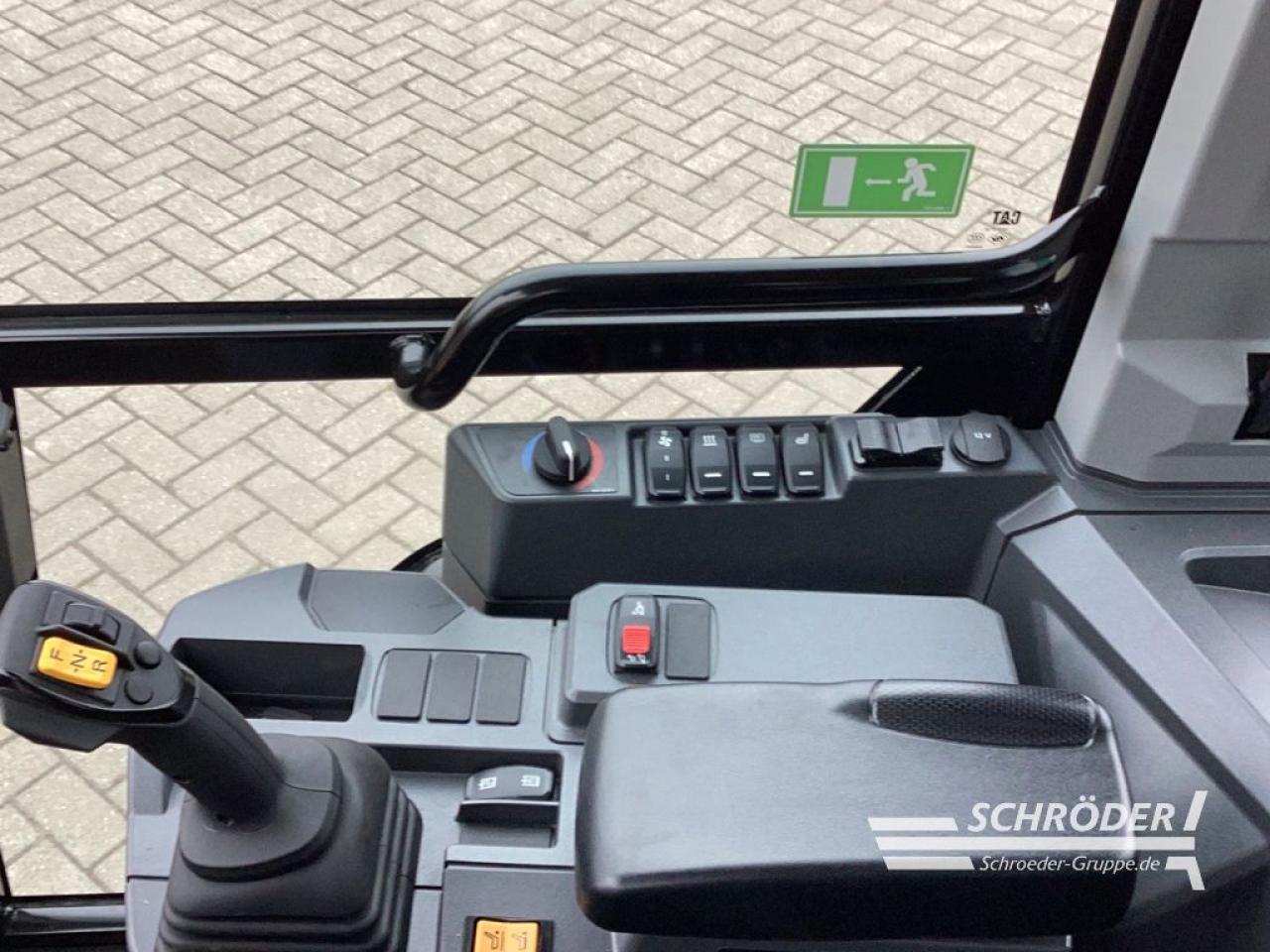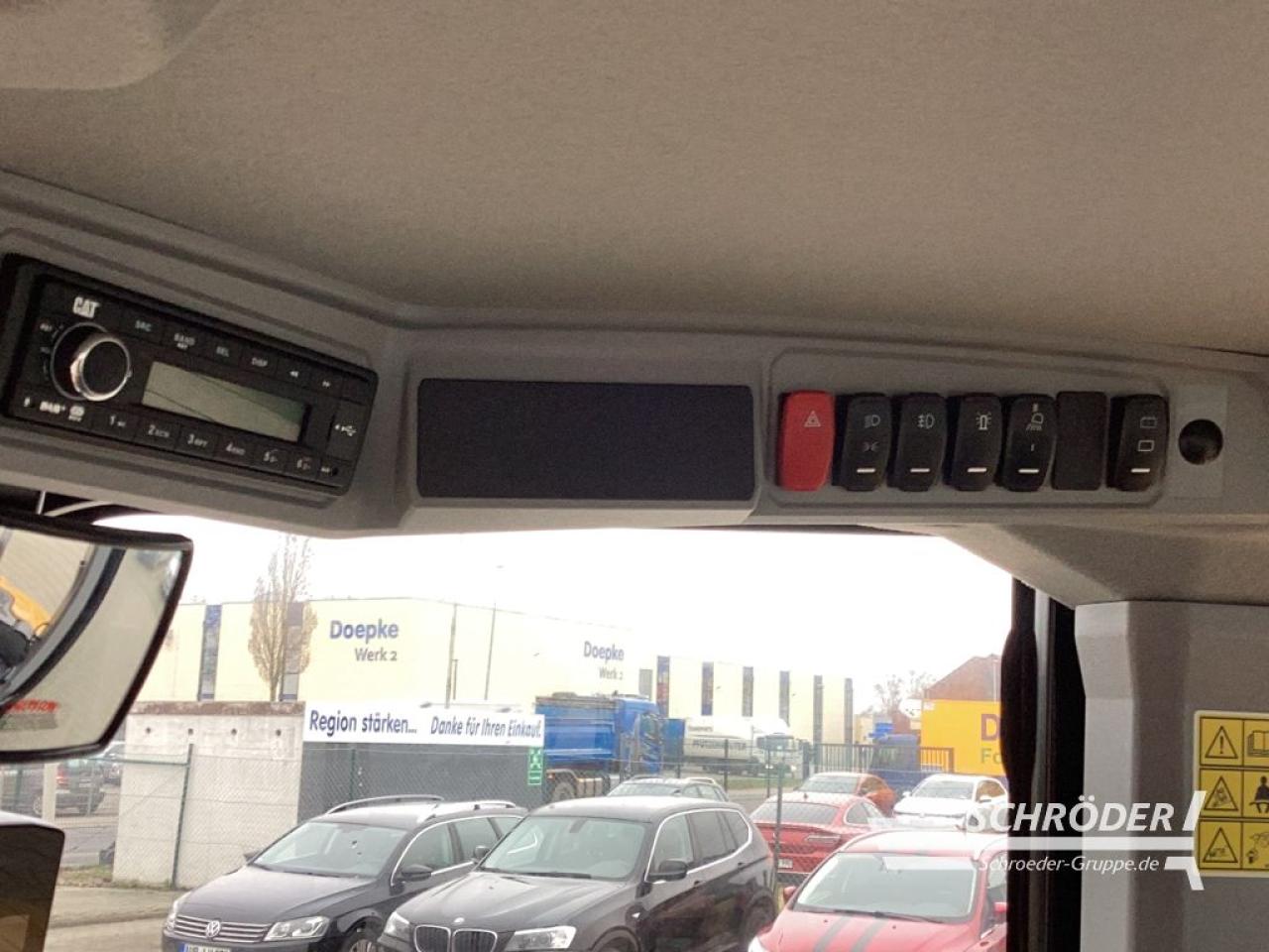 Grundpreis, Einsatzgewicht: Ca. 5.730 kg (ausrüstungsabhängig), Motor:, CAT-Vierzylinder-Dieselmotor, Typ C2.8 DIT (wassergekühlt), EU-Abgasstufe V durch DPF und DOC, passive Regenerierung), Turbolader, Hubraum: 2,8 l, Leistung: 55,4 kW / 75,3 PS (300 Nm) nach ISO 14, Getriebe:, Hydrostatischer Fahrantrieb mit lastabhängiger elektronischer Regelung , Achsen:, Allradantrieb, Planetenantriebe, Zentral angeordnetes Knickpendelgelenk, Vorderachse: 100% , Sperrdifferential (bis 5 km/h aktivierbar),Hinterachse: 100% Sperrdifferential (bis 5 km/h , aktivierbar), Vorder- und Hinterachse in HD-Ausführung., Bereifung: 405/70 R18 SPT9 Dunlop, Lenkung: Knicklenkung (39 Grad), Wenderadius 4,40 m, Bremsen:, Betriebsbremse: Hydraulisch betätigte Scheibenbremse am Antriebsstrang,, Feststellbremse: auf die Kardanwelle wirkende Scheibenbremse, Bremsinchpedal, Elektrische Anlage: , 12 V wartungsfreie Batterie, 90Ah, Komplette Beleuchtungsanlage gemäß StVZO,, 2x Halogen-Fahrscheinwerfer und 2x LED-Rückleuchten, 4x LED-Arbeitsscheinwerfer , (2x vorne, 2x hinten), 4x LED-Servicebeleuchtung (Motorraum), Ladeeinrichtung:, Elektronische Ansteuerung der Ladeeinrichtung,Z-Kinematik mit Parallelhub, 3. Hydraulikkreis,, ISO-Schnellwechsler, Joystickinkl. FNR-Schalter, Druckknopf zur Aktivierung der , Differenzialsperre und proportionalem Schiebeschalter für Aktivierung der Zusatzhydraulik, Kabine:, Schallisolierte ROPS/FOPS-Überdruckkabine ohne Schiebefenster, Sonnenblendevorne,, Scheibenwaschanlage vorne/hinten, CAT-Kontursitz, Neigungsverstellbares Lenkrad, 7“ Display mit , Wegfahrsperre (via Monitor), 2 x USB-Port, Kabineninnenlicht-Türkontaktschalter,, Heizung inkl. Heckscheibenheizung, Radiovorbereitung (12V) inkl. Antenne, Kabel und Lautsprecher, , verschließbare Stau Box, Umweltzeichen „Blauer Engel“ (besonders lärm- und emissionsarm), , Schalldruckpegel (innen) 71 dB(A), Schallleistungspegel (außen) 99db(A), Serienausrüstung:, Abschließbare Tankdeckel, Betriebsstundenzähler, Bergungsvorrichtung(abnehmbar), , automatische Leerlaufabschaltung, einstellbares Ansprechverhalten des Joysticks sowie des , hydrostatischen Fahrantrieb, Hub- und Kippgeschwindigkeit einstellbar, mitschwingende , Joystickkonsole (am Sitz montiert), StVZ (Datenbestätigung + EG-Konformitätserklärung)., Technologie:, Product Link PL243 (CAT Flottenmanagement); CAT Flottenmanagement. Maschine ist mit der CAT, Telematik Box PL243 ausgerüstet und ist in der Lage,GPS-Position und Betriebsstunden via , Mobilfunk zu übertragen. Der Nutzungsumfang (zzgl. Übertragungskosten) wird separat , im Servicepaket vereinbart, bei Abschluss eines Servicepaketes sind GPS-Position und, Betriebsstunden bereits kostenfrei enthalten., Grundausrüstung inkl. Reifen und ohne Schaufel, Sonderausstattung:, DAB+ Radio inkl. Bluetooth + Mikrofon, Gelbe Rundumleuchte LED, Deluxe-Sitz, 2 x Bluetooth Schlüssel inkl. 1 x Standardschlüssel, Garantie kompl. Maschine bis 28.02.2027 o. max. 1.000 Bh.
