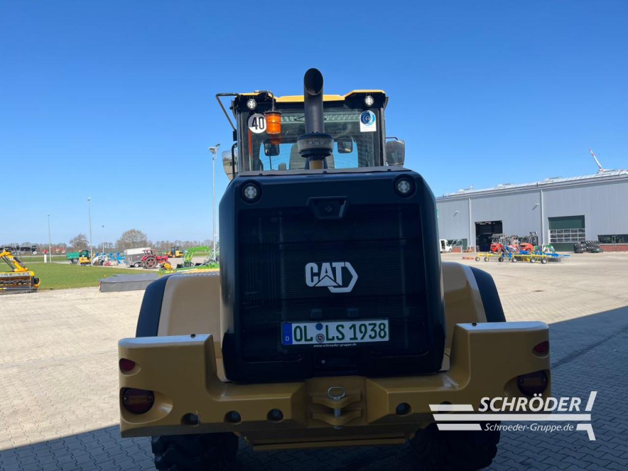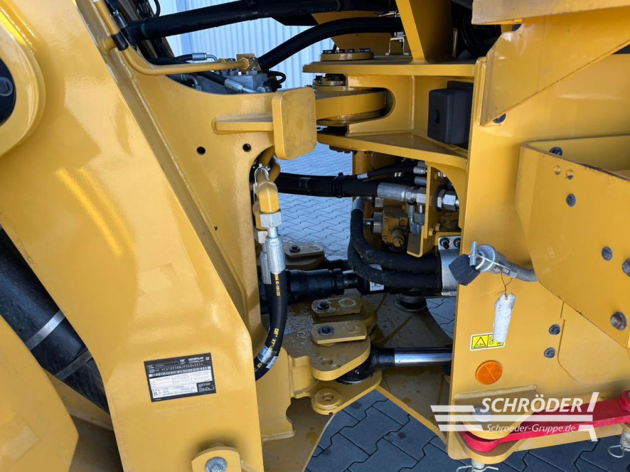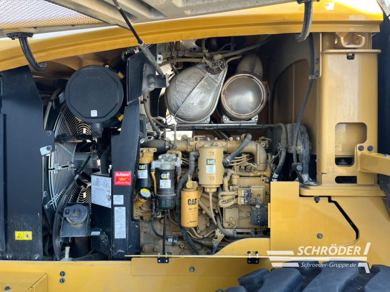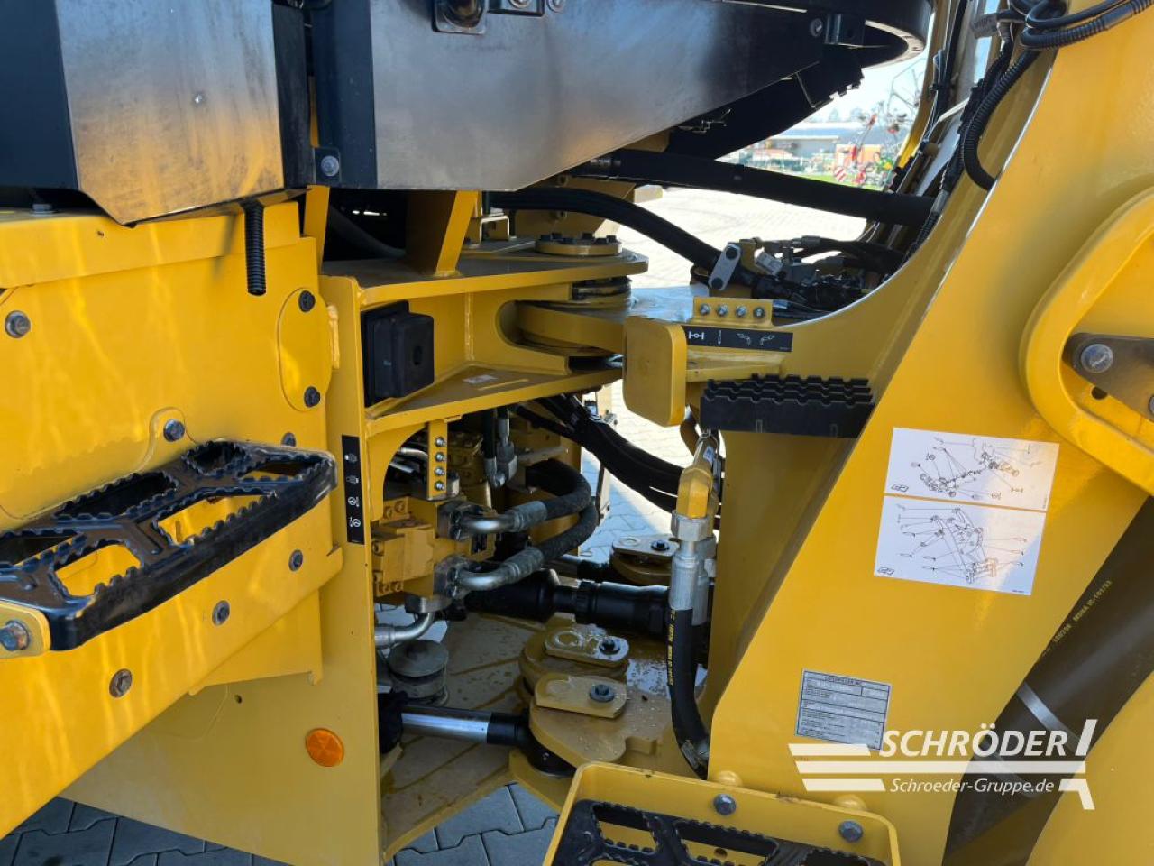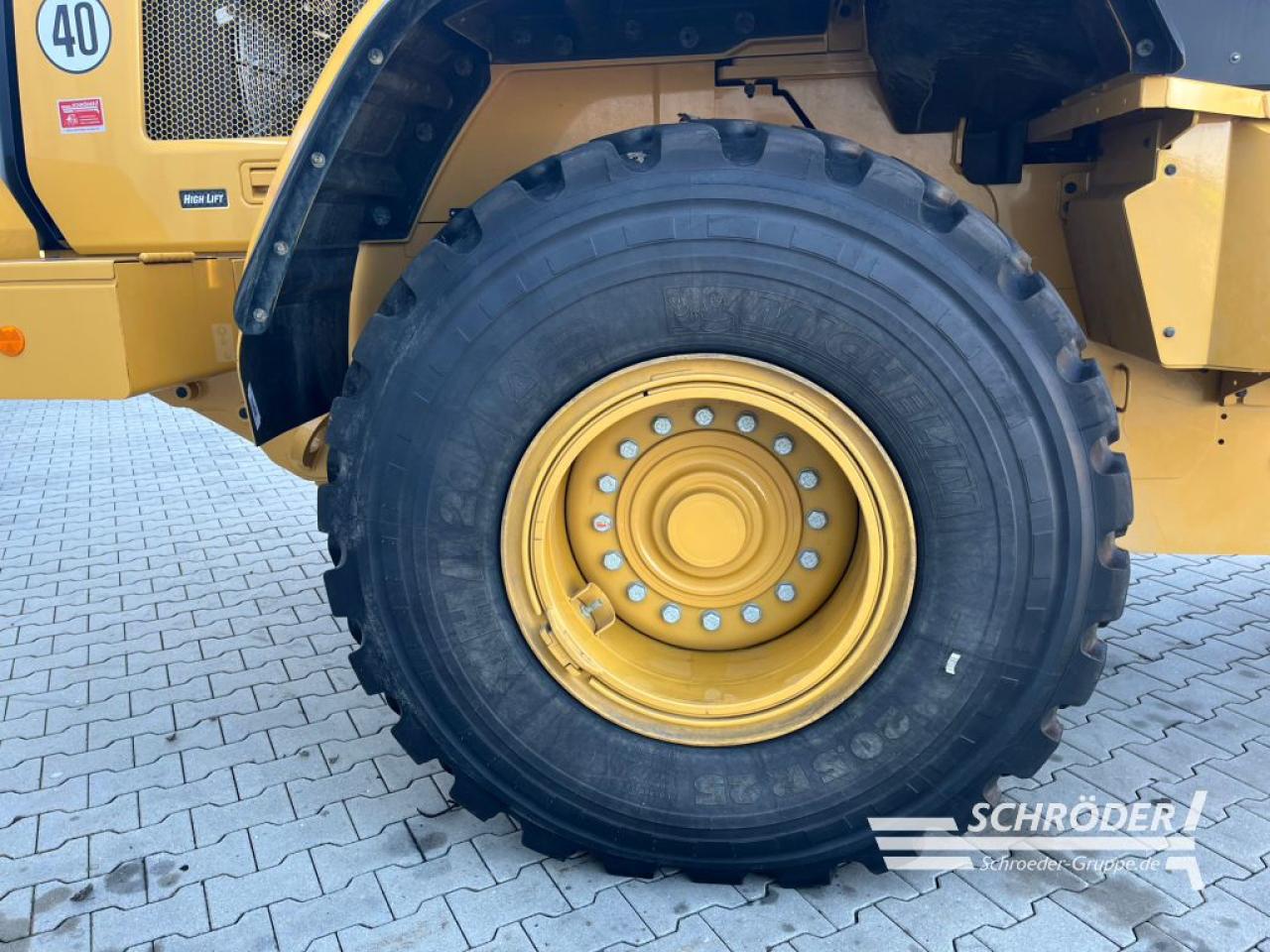 Einsatzgewicht: ca. 16.200 kg (ausrüstungsabhängig), CAT-Sechszylinder-Dieselmotor, Typ C7.1 Acert (wassergekühlt), EU-Abgasstufe V durch DEF (AdBlue) DOC und DPF (passive Regenerierung), Turboaufladung und Ladeluftkühlung, Hubraum: 7,1 l, Leistung: 140 kW / 190 PS nach ISO 14396, hydrostatischer Fahrantrieb mit lastabhängiger elektronischer Regel, Vorderachse starr, Allradantrieb, Planetenantriebe innenliegend, Vorderachse: 100% Sperrdifferential (manuell), Hinterachse: um +/- 11 Grad pendelnd, Hinterachse ohne Sperrdifferential, Bereifung: 20.5 R25 Michelin XHA 2 L3 (3-teilige Felge), Knicklenkung (40 Grad), Wenderadius 5,55 m (über die Reifenaussenkante), Load Sensing-Lenkhydraulik, integriertes Notlenksystem, Betriebsbremse: hydraulisch betätigte, im Ölbad laufende Scheibenbremen an allen vier Rädern, elektronische Feststellbremse: auf die Kardanwelle wirkende Scheibenbremse, 24 V wartungsfreie Batterie, komplette Beleuchtungsanlage gemäß StVZO, 2x LED-Fahrscheinwerfer, 4x LED-Arbeitsscheinwerfer (vorne), 2x LED-Arbeitsscheinwerfer (hinten), 2x LED-Rückfahrscheinwerfer (hinten), 3x LED-Servicelampen im Motorraum, Load-Sensing-Arbeitshydraulik, Elektronische Ansteuerung der Ladeeinrichtung, Z-Kinematik, 3. Hydraulikkreis, Vorbereitung für Schnellwechselhydraulik, Joystick inkl. FNR-Schalter, Druckknopf zur Aktivierung der Differenzialsperre und, proportionalem Schiebeschalter für Aktivierung , schallisolierte ROPS/FOPS-Überdruckkabine mit Schiebefenster links/rechts,, Plattform zur Scheibenreinigung, Touch-Display mit integrierter Wegfahrsperre, Sonnenblende vorne/hinten, Klimaautomatik, Luftvorreiniger (Kabinenluft), Scheibenwaschanlage vorne/hinten, verstellbare Lenksäule (Höhe + Neigungswinkel), luftgefederter Deluxesitz mit mittelhoher Rückenlehne + Sicherheitsgurt, elektrisch einstellbare beheizte Außenspiegel mit zusätzlichen Parabolspiegeln; klappbar, 2x Innenspiegel in der Kabine, Schalldruckpegel (innen) 68 dB(A), Schallleistungspegel (außen) 101 dB(A), Umweltzeichen „Blauer Engel“, Radiovorbereitung (12V) inklusive Antenne, Kabel und Lautsprecher, abschließbare Tankdeckel, Betriebsstundenzähler, Bergungsvorrichtung, hydraulische Schwingungsdämpfung, Rückfahrkamera, Rückfahrwarneinrichtung, programmierbare Motorabschaltung, programmierbare Fahrer-IDs mit Passwortkennung inkl. Wegfahrsperre, Hydraulikölkühler, StVZ (Datenbestätigung + EG-Konformitätserklärung), elektronisch programmierbare Hub- und Schaufelpositionierer, Zylinderendlagendämpfung, Felgenzugkraftsteuerung, Product Link PL641 (CAT Flottenmanagement); CAT Telematikbox PL641, ISO-Schnellwechsler, luftgefederter, beheizter Fahrersitz, Rundumleuchte mit Magnethalterung, High-Lift Ausführung, Garantieende kompl. Maschine 14.06.2026 oder max. 2.000 Bh