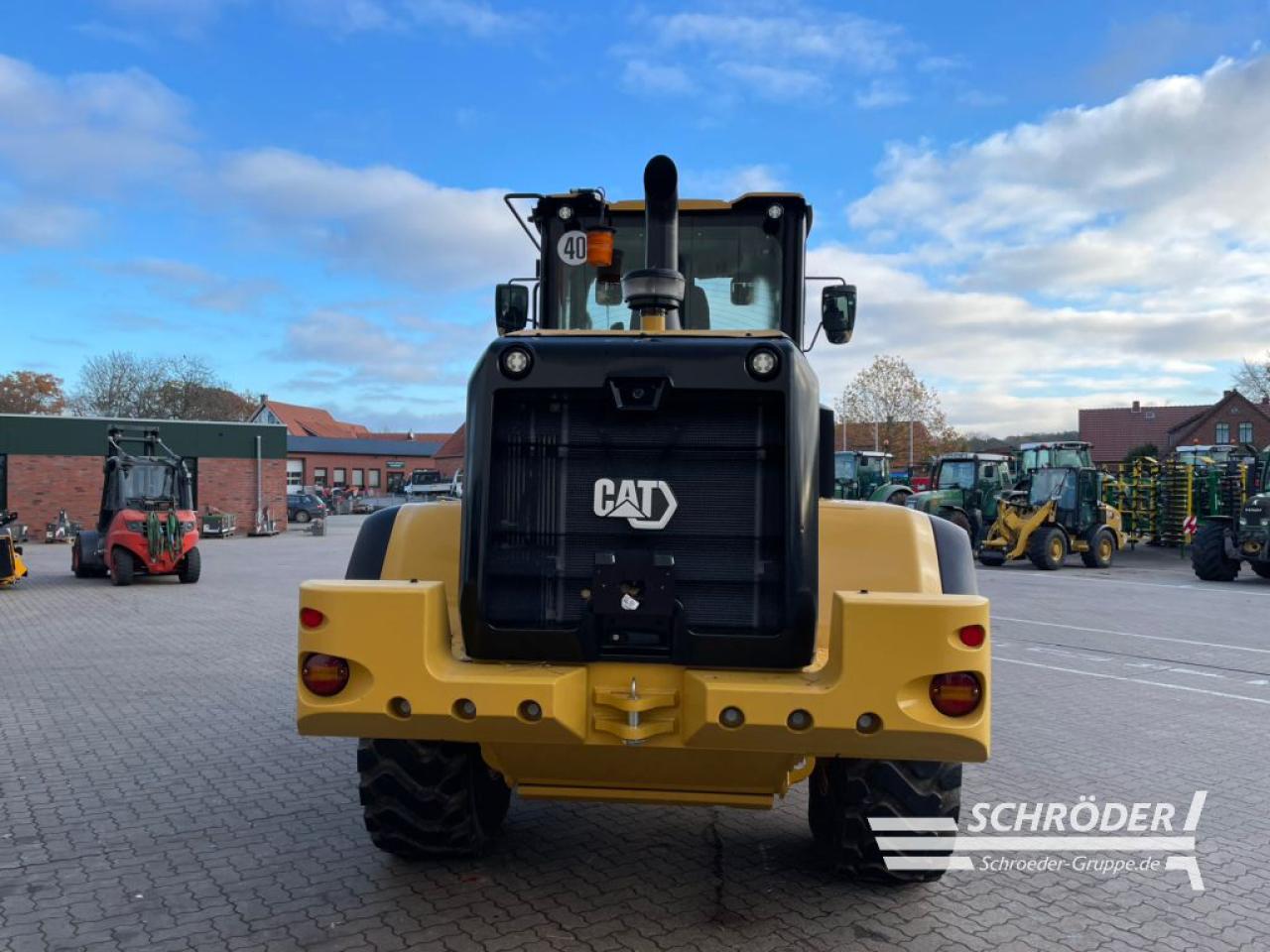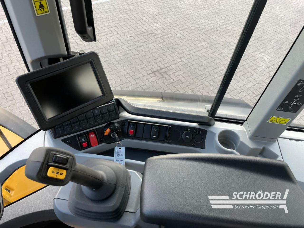 Einsatzgewicht: ca. 16.200 kg (ausrüstungsabhängig), CAT-Sechszylinder-Dieselmotor, Typ C7.1 Acert (wassergekühlt), EU-Abgasstufe V durch DEF (AdBlue) DOC und DPF (passive Regenerierung), Turboaufladung und Ladeluftkühlung, Hubraum: 7,1 l, Leistung: 140 kW / 190 PS nach ISO 14396, hydrostatischer Fahrantrieb mit lastabhängiger elektronischer Regel, Vorderachse starr, Allradantrieb, Planetenantriebe innenliegend, Vorderachse: 100% Sperrdifferential (manuell), Hinterachse: um +/- 11 Grad pendelnd, Hinterachse ohne Sperrdifferential, Bereifung: 20.5 R25 Michelin XHA 2 L3 (3-teilige Felge), Knicklenkung (40 Grad), Wenderadius 5,55 m (über die Reifenaussenkante), Load Sensing-Lenkhydraulik, integriertes Notlenksystem, Betriebsbremse: hydraulisch betätigte, im Ölbad laufende Scheibenbremen an allen vier Rädern, elektronische Feststellbremse: auf die Kardanwelle wirkende Scheibenbremse, 24 V wartungsfreie Batterie, komplette Beleuchtungsanlage gemäß StVZO, 2x LED-Fahrscheinwerfer, 4x LED-Arbeitsscheinwerfer (vorne), 2x LED-Arbeitsscheinwerfer (hinten), 2x LED-Rückfahrscheinwerfer (hinten), 3x LED-Servicelampen im Motorraum, Load-Sensing-Arbeitshydraulik, Elektronische Ansteuerung der Ladeeinrichtung, Z-Kinematik, 3. Hydraulikkreis, Vorbereitung für Schnellwechselhydraulik, Joystick inkl. FNR-Schalter, Druckknopf zur Aktivierung der Differenzialsperre und, proportionalem Schiebeschalter für Aktivierung , schallisolierte ROPS/FOPS-Überdruckkabine mit Schiebefenster links/rechts,, Plattform zur Scheibenreinigung, Touch-Display mit integrierter Wegfahrsperre, Sonnenblende vorne/hinten, Klimaautomatik, Luftvorreiniger (Kabinenluft), Scheibenwaschanlage vorne/hinten, verstellbare Lenksäule (Höhe + Neigungswinkel), luftgefederter Deluxesitz mit mittelhoher Rückenlehne + Sicherheitsgurt, elektrisch einstellbare beheizte Außenspiegel mit zusätzlichen Parabolspiegeln; klappbar, 2x Innenspiegel in der Kabine, Schalldruckpegel (innen) 68 dB(A), Schallleistungspegel (außen) 101 dB(A), Umweltzeichen „Blauer Engel“, Radiovorbereitung (12V) inklusive Antenne, Kabel und Lautsprecher, abschließbare Tankdeckel, Betriebsstundenzähler, Bergungsvorrichtung, hydraulische Schwingungsdämpfung, Rückfahrkamera, Rückfahrwarneinrichtung, programmierbare Motorabschaltung, programmierbare Fahrer-IDs mit Passwortkennung inkl. Wegfahrsperre, Hydraulikölkühler, StVZ (Datenbestätigung + EG-Konformitätserklärung), elektronisch programmierbare Hub- und Schaufelpositionierer, Zylinderendlagendämpfung, Felgenzugkraftsteuerung, Product Link PL641 (CAT Flottenmanagement); CAT Telematikbox PL641, ISO-Schnellwechsler, luftgefederter, beheizter Fahrersitz, Rundumleuchte mit Magnethalterung, High-Lift Ausführung, Garantieende kompl. Maschine 11.08.2026 oder max. 2.000 Bh