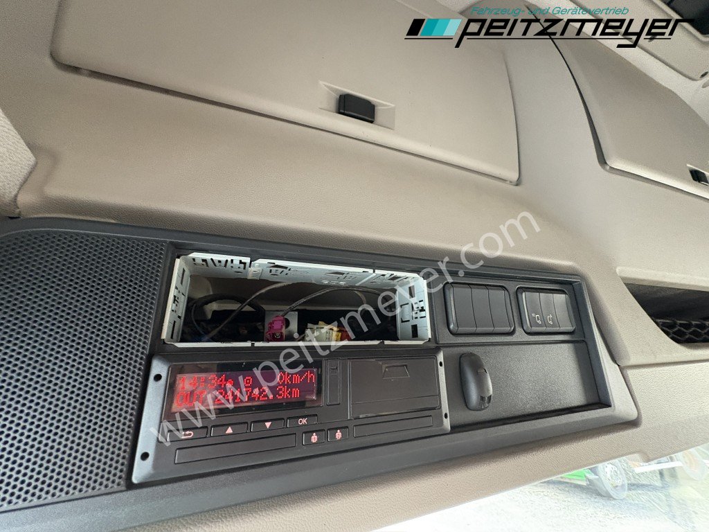 Abgasnorm Euro 6, Radformel 4x2, digitaler Tachograph, Radio mit CD, Multifunktionslenkrad, Rückwandfenster, Sonnenblende außen, Colorverglasung, Stahlstoßstange, Fernverkehr Fahrerhaus, Nebenantrieb, Tempomat, Standheizung, Zentralverriegelung mit Fernbedienung, Fensterheber elektr., Spiegel elektr. verstellbar, Fahrersitz luftgefedert, Armlehne für Fahrersitz, Klimaanlage, Nebelscheinwerfer, Diff.-Sperre Hinterachse, Hinterachse luftgefedert, Umweltplakette: 4(Grün), Automatikgetriebe, Diesel, Schadstoffklasse: EURO6, Hinterachsenantrieb, Klimaanlage, Grundfarbe: schwarzExtras in der AusstattungABS, Differentialsperre, Fahrerschlafplatz, Hydraulik (Nebenantrieb), Standheizung, Tempomat, Federung: Blatt-Luft, Nutzlast(kg):10890, Dauerbremse: Motorbremse