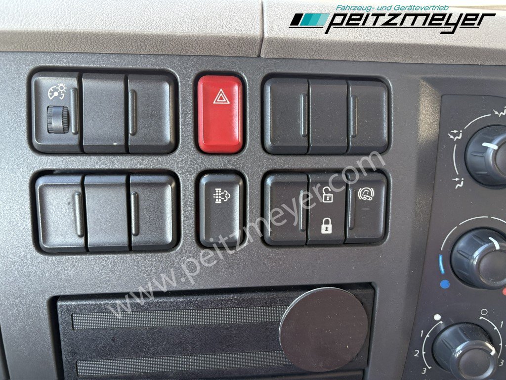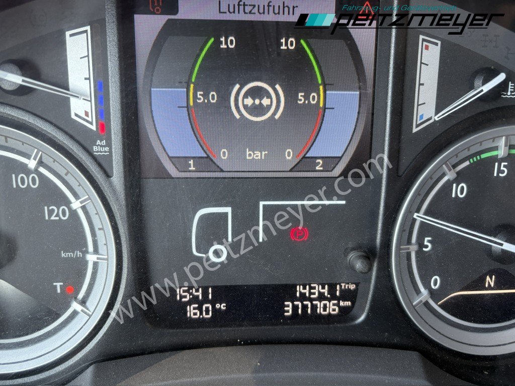 Pritsche mit Plane, Heckportaltüren, Schiebeplane rechts und links, Edscha Schiebeverdeck, Abgasnorm Euro 6, digitaler Tachograph, Radio mit CD, Multifunktionslenkrad, Dachspoiler, Nahverkehr Fahrerhaus, Kraftstofftank 300L, Alu, 6 Zylinder Reihenmotor, ABS, Tempomat, Dachluke, Zentralverriegelung mit Fernbedienung, Fensterheber elektr., Spiegel elektr. verstellbar, Spiegelheizung, Fahrersitz luftgefedert, Klimaanlage, Hinterachse luftgefedert, Anhängerkupplung Kugelkopf 3,5 t., Umweltplakette: 4(Grün), Automatikgetriebe, Diesel, Schadstoffklasse: EURO6, Hinterachsenantrieb, Klimaanlage, Grundfarbe: weiß, Federung: Blatt-Luft, Nutzlast(kg):9396, Dauerbremse: Motorbremse