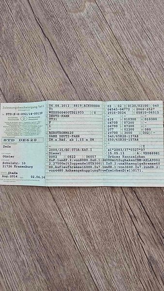 Bereifung.: 540/65 R28 + 650/65 R38, Frontkraftheber, Frontzapfwelle, gefederte Vorderachse automatische Anhängekupplung, K80 Festanbau, Oberlenker hinten, 4x DW Steuergeräte hinten, Druckluftbremse, Laod Sensing, Arbeitsscheinwerfer, Klimaanlage, Radio, Glasdachluke