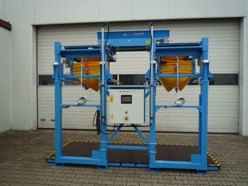 Automatischer Doppel-Big-Bag-Füller für Big-Bag-Höhen von 1600 mm bis 2000 mm.