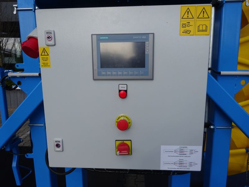 Bedienung hand/automatisch, Nachfüllknopf, Füllhöhe einstellbar über Seilwinde, Schaltschrank, Einfahrtaschen für Gabelstapler.