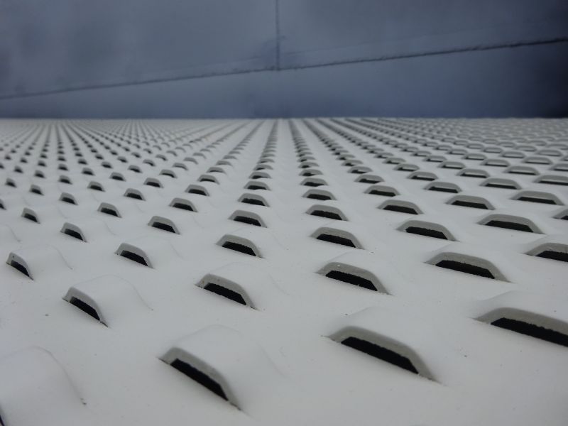 Doppelter Boden aus 3 mm Lochblech mit Schlitzbrückenlochung Lochung: DIN LP 12.5X11-28.1X45