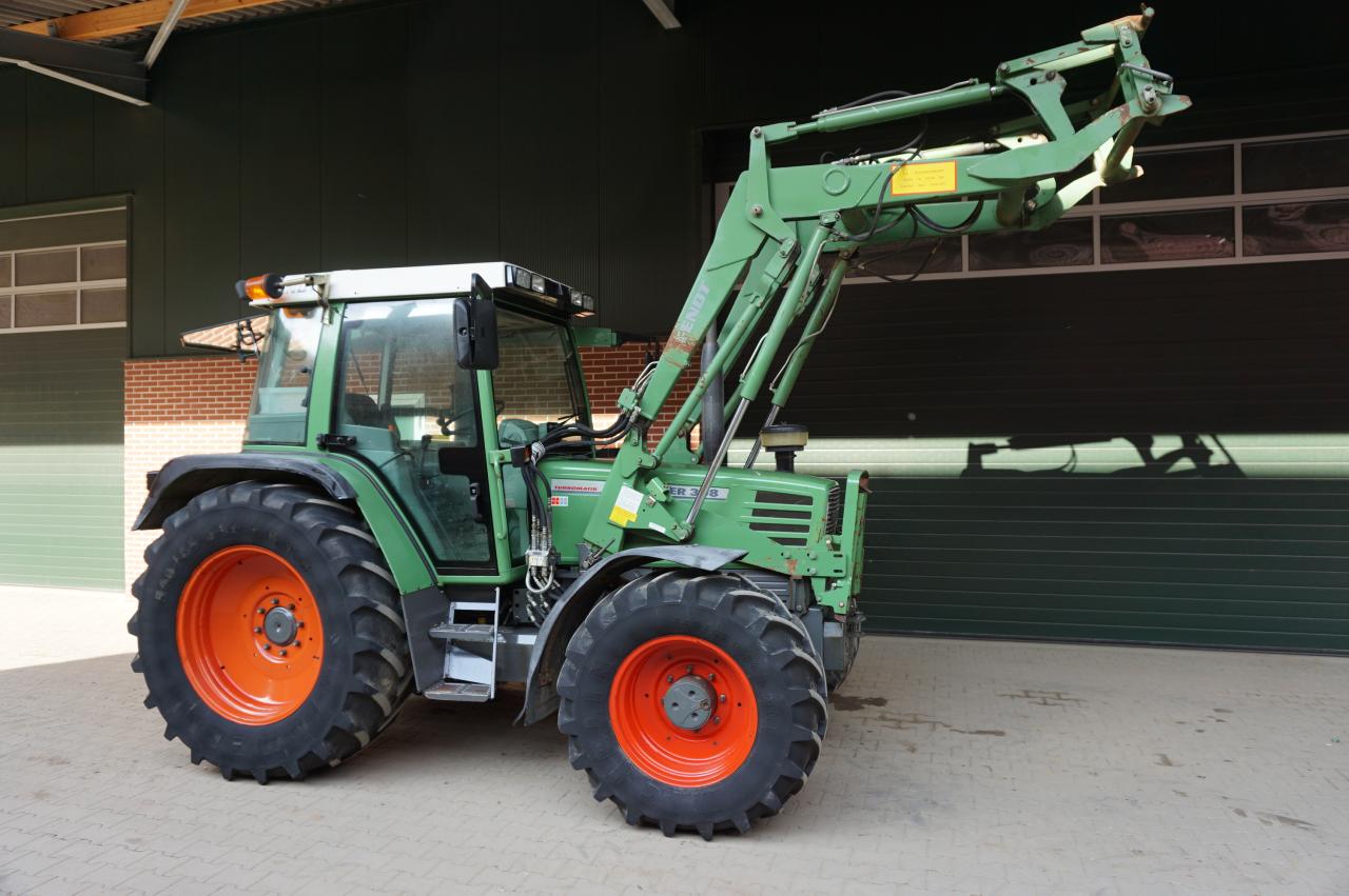 Frontladertyp: Fendt, Druckluftanlage (2-Kreis), Arbeitsscheinwerfer 4x hinten, Arbeitsscheinwerfer 4x vorn, Elektronische Hubwerksregelung (EHR), Kriechgang, Luftgefederter Sitz, Parallelführung, Wendeschaltung, Zugmaul - manuell, höhenverstellbare Anhängevorrichtung, Dreipunkt-Außenbedienelement, Heckzapfwelle-Außenbedienung, Oberlenker mechanisch (hinten), 3. Steuerkreis, Einhebelsteuergerät (mechanisch)