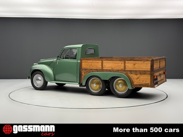 Die Motorleistung in KW beträgt 12. Das Fahrzeug wurde am 03.1951 erstmalig zugelassen. die Laufleistung beträgt 11400 Kilometer. Die Außenfarbe ist grün. Ein Mettalic-Lack ist üblicherweise ein Zweischicht-Lack, bestehend aus einer Lackschicht und dem Klarlack. Der Hubraum des Motors beträgt 569 cm³. Es sind 2 Sitze vorhanden. Als Kraftstoff dient Benzin. Es ist ein manuelles Schaltgetriebe verbaut. Das Fahrzeug ist fahrtauglich.