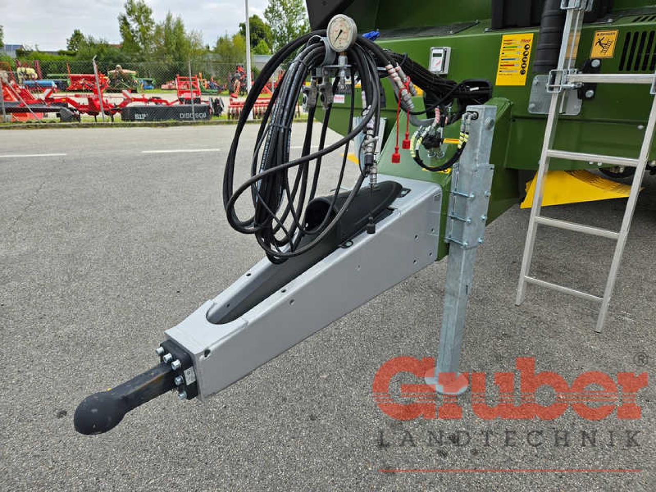 neu, Ketten-Dungstreuer, Tandemfahrgestell, zul. Gesamtgewicht 19.000 kg, entspricht 16.000 kg Achslast zzgl. Stützlast 3.000 kg, Zugholm ungefedert drehbar für Untenanhängung, Kugelkopf K80 (Ø 80 mm), Stützfuß hydraulisch, 2-Kreis-Druckluftbremse mit ALB, 40 km/h Ausführung mit TÜV Abnahme (incl. Kotflügel, Unterfahrschutz und Seitenmarkierungsleuchten), Parabelfederung Titan-Aggregat, 2 Bremsachsen, vordere starr, hintere gelenkt, hydraulisch sperrbar, (1 Steuergerät erforderlich), Bereifung 710/45R22.5 / Tragfähigkeit pro Rad 4.625 kg bei 65 km/h, 6.300 kg bei 40 km/h, Streuermulde ca. 5.500 mm x 2.000 mm / 1.200 mm, Zapfwellendurchtrieb mit Nockenschaltkupplung, Streuermulde lackiert dunkelgrün, Steinschutz an der Frontwand montiert, Breitstreuaggregat: much control für Streubreiten von bis zu 26 Meter 2.150 mm Durchgangsbreite, 2 liegende Fräswalzen Ø 560 mm inkl. Stauschieber mit innenliegender Führung für beste Abdichtung und hydraulischer Heckklappe mit mechanisch einstellbarem Fallwinkel, 2-Teller-Breitstreuwerk varioSPLASH Ø 1.100 mit je 6 Wurfflügeln mit Platten aus HB 400 und mechanisch einstellbarem Streuwinkel (2 Steuergeräte doppelwirkend erforderlich), Stauschieber Öffungsgradanzeiger an der Stirnseite, Potentiometer elektrisch inklusive Bedienpult, Kratzboden mit V2 Kettenglieder 20 mm (Bruchlast 50 Tonnen, 1 Steuergerät erforderlich), manuelle Spannvorrichtung mit Außenschmierung LED Beleuchtung 12 V mit 7-poligem Stecker, Gelenkwelle einseitig Weitwinkel, 6 Zähne, mit Bedienungsanleitung und komplettem Normalzubehör