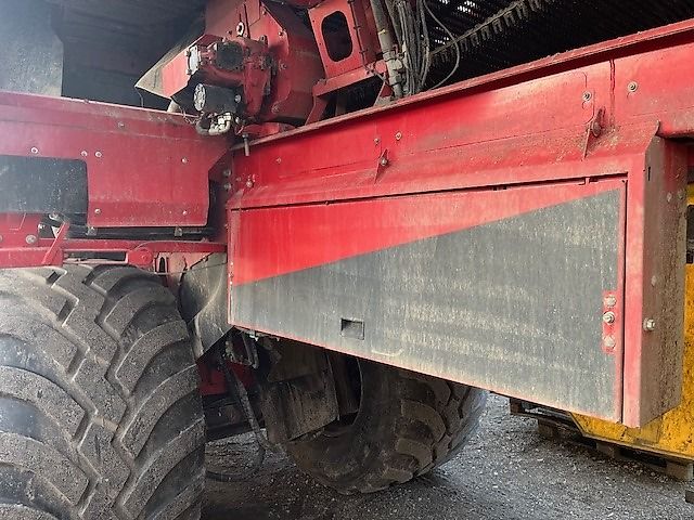 Anhängung Zugkugelkupplung Ø 80 mm / Gelenkwelle mit 6 Zähnen / Antrieb mit Zapfwellendrehzahl 540 U/min / Direktantrieb / Reihenweite 75 cm / Aufnahmeweite: 600 mm / Dammtrommeln: Ø 390 mm / 3 Blatt Schar lang / Steinsicherung für Spatenschar / Rodetiefenverstellung vom Terminal / Automatische Dammentlastung / Automatische Dammmittenfindung / 2 Sechscheiben / 1. Siebband Teilung 35 mm / 1. Siebband mit Schlossverbindung / Teilungsunabhängiger Reibantrieb 1. Siebband mit Unterstützungswalze / Geschwindigkeit 1. Siebband - schnell / V2A-Bleche im Schwingrahmen / Schwingklopfer im 1. Siebband mit Geschwindigkeitsverstellung vom Terminal / 2. Siebband Teilung 32 mm / 2. Siebband mit Schlossverbindung / Teilungsunabhängiger Reibantrieb 2. Siebband / VarioDrive: stufenloser Antrieb für das 1. und 2. Siebband / Speedtronic-Web: Vorfahrtsgeschwindigkeits und lastabhängige Siebbandregelung / Grobkrautband Abstand 200 mm / Verstellung für Abstreifkämme vom Terminal / Ölkühler für Eigenhydraulik / Band 1. Trenngerät Teilung 40 mm / H-Profil Igelstab 1. Trenngerät / Abstreifer 1. Trenngerät Glattwalzen-Abstreifer / Neigungsverstellung 1. und 2. Trenngerät vom Terminal / Höhenverstellung Abstreiferwalze 1. Trenngerät vom Terminal / Winkelverstellung Abstreifwalze 1. Trenngerät vom Terminal / Schlupfüberwachung 1. Trenngerät und 2. Siebband / Beimengenabfuhrband hinter dem 1. Trenngerät / 2. Trenngerät: Igelband mit Stäben / Band 2. Trenngerät Teilung 40 mm / H-Profil Igelstab 2. Trenngerät / Abstreifer 2. Trenngerät Glattwalzen-Abstreifer / Geschwindigkeitsverstellung für 2 Bürsten- bzw. Fingerbänder vom Terminal / Neigungsautomatik 1. und 2. Trenngerät / Geschwindigkeitsverstellung 1. und 2. Trenngerät vom Terminal / Winkelverstellung Abstreifwalze 2. Trenngerät vom Terminal / 3. Trenngerät: Igelband mit Stäben / 3. Trenngerät UB-Trenngerät, zwei zweireihige Fingerabstreifbänder / Band 3. Trenngerät Teilung: 40 mm / H-Profil Igelstab 3. Trenngerät / Höhenverstellung des Fingerbandes rechts und links, vom Terminal / Höhenverstellung Abstreifwalzen 2. Trenngerät vom Terminal / Mechanische Höhenverstellung der Abstreifwalzen vom 3. Trenngerät / Speedtronic-Sep: Automatische Geschwindigkeitsverstellung der Trenngeräte / Verlesetisch (1100 mm) / Verleseband mit Mitnehmern / Beimengenband regelbar, Differenzgeschwindigkeit zum Verlesetisch / Steinbunker mit Ablaufband / Vorsatzelevator mit Ultraschall-Sensor / 8,0 t Bunker / Bunkerband mit Tuch / Bunkerbefüllautomatik inkl. Automatik für Vorsatzelevator und Befülloptimierung / Druckluftbremse / Automatische Achsmittenfindung und Neigungsautomatik / Bereifung 850/50 R30.5 / Kamerapaket SmartView Pro / Beleuchtungspaket Pro / ISOBUS Bedienterminal CCI 1200 Touchscreen Terminal / Multifunktionshebel (ISOBUS-fähig) anstatt der Joystickbox rechts / ISOBUS / MemoryControl / Anbindung an myGRIMME / Antriebsmedium Mineral-Öl / Load-Sensing Kit mit Steuerleitung zum Traktor / Igelband mit Platten