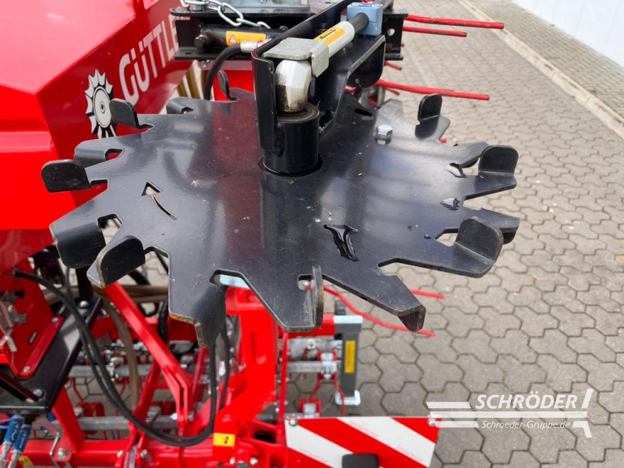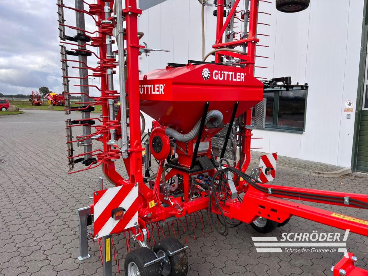 NonStop-Striegel 2-reihig, hydr. klappbar, Schwerstriegel für Acker und Grünland, komplett mit Dreipunktturm und Stützfuß, mit 8 Tiefenführungsrädern hinten, höhenverstellbar, mit Konsole (Saattechnik GreenMaster) zum Aufbau, des Pneumatikstreuers EPS 5, Mit Warntafeln und LED-Beleuchtung, Serienmäßig Koppelsatz Standard, Arbeitsbreite: 8.000 mm, Transportbreite: 3.000 mm, Ripperboard 800 QUATTRO, Pneumatikstreuer EPS 5, 660 l HYD, Sägerät Typ EPS 5 mit 660 Liter Saatguttank, mit verstärkten hydraulischen Gebläse, Adapterplatte zum Aufbau des Pneumatikstreuers an GreenMaster, Antriebssaite 3,00 m, Satz = 1 linker und 1 rechter Abstreifer für 1 Doppelrad am GreenMaster, Elektrische Saatmengenverstellung (1 Behälter), Hydraulische Aushebung für Bodenantriebsrad mit Winkelgetriebe an GreenMaster