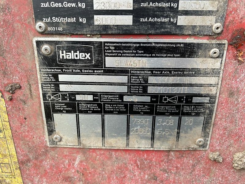 Lenkachse Plane Hawe Wechselpritsche Baujahr 2006 hydraulische Nachlauf Lenkachse Bereifung 750 45 R26 5 Profil ca 70 Parabel Federung Hawe Muldenkipper Aufbau Baujahr 2009 Leiter und Podest Aufsatzerhöhung Hawe Überladewagen Aufbau Baujahr 2017 Plane Auslaufrohr mit hydraulischer Schütte 20843 448064110252 • Gewicht (kg) 33000.00 • Gesam ...