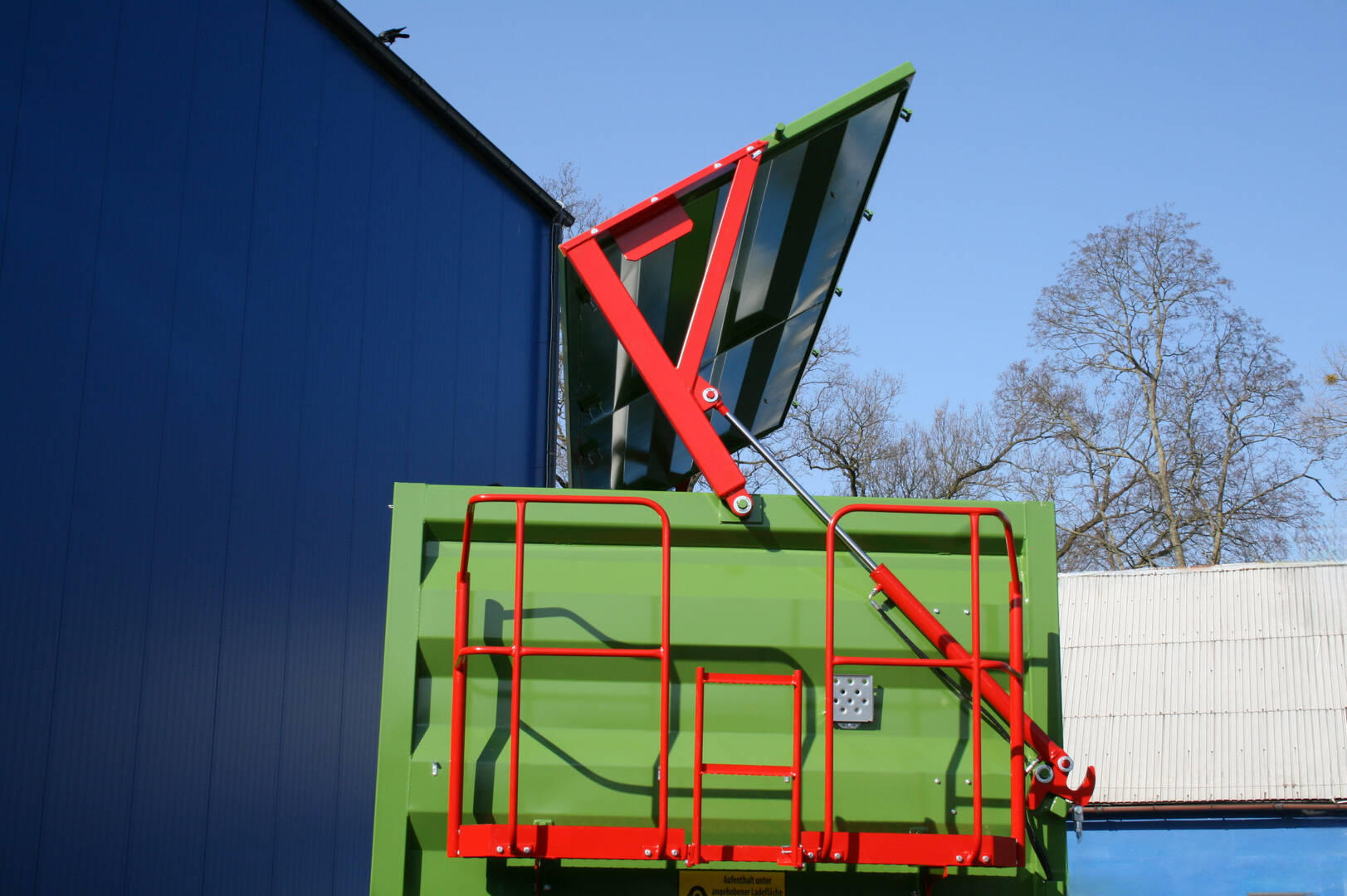 - Die Seitenwand wird bequem vom Schlepper geöffnet und geschlossen.
