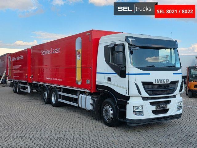 | Zusätzliche Informationen | DEUTSCH Besuchen Sie unsere Webseite ... wo Sie unseren kompletten Fahrzeugbestand mit vielen weiteren Fotos und Informationen in mehreren Sprachen finden. SEL 8021 Iveco Stralis 420 Ladebordwand / Lenkachse / Liftachse deutsche Zulassung EZ: 26.11.2014 527.339 km Motorstunden: 12.646 Euro 6A Techn.Ges.gew. (kg): 27.000 Zul.Ges.gew. (kg): 26.000 Leergewicht (kg): 12.945 FIN: WJME2NSH60C297784 HU: 12.2025 MOTOR UND GETRIEBE: 11.120 cc Anzahl der Zylinder: 6-in-Reihe Leistung: 309kW / 420PSPS Getriebe: Automatik Motorbremse Intarder: NEIN BEREIFUNG UND ACHSEN: Bereifung: 315/70 R 22,5 Achsenkonfiguration: 6x2 3. Achse: Lenkachse 3. Achse: Liftachse Luftfederung Scheibenbremse Radstand (mm): 5.100 + 1.395 Vorderachse (kg): 8.000 TANKS: 1 Tank FAHRERHAUS: 2 Schwingsitz Multifunktionslenkrad 1 Bett Standheizung Klimaanlage CD-Radio AUFBAU Innenmaß: Höhe (m): 2,22 (2,05) Breite (m): 2,48 Länge (m): 8,10 ANDERE SPEZIFIKATIONEN: Sonnenblende außen Anhängerkupplung LADEBORDWAND: Dautel Typ: DL 2500T Qmax (kg): 2.500 FAHRZEUGUNTERLAGEN: Schein Brief *-*-*-*-*-*-*-*-* SEL 8022 Orten ZPRASQ Ladebordwand deutsche Zulassung EZ: 26.11.2014 Techn.Ges.gew. (kg): 18.000 Zul.Ges.gew. (kg): 18.000 Leergewicht (kg): 5.850 FIN: W0900Z218E0004272 HU: 12.2025 / SP: 06.2026 BEREIFUNG UND ACHSEN: Bereifung: 385/65 R 22,5 Achsenkonfiguration: 2 Achsen Luftfederung Scheibenbremse AUFBAU Innenmaß: Höhe (m): 2,23 (2,06) Breite (m): 2,48 Länge (m): 7,30 LADEBORDWAND: Dautel Typ: DL 250010 Baujahr: 2014 Qmax (kg): 2.500 FAHRZEUGUNTERLAGEN: Schein Brief M. BUFANO 0049 175 575 3076 / ... English, Deutsch) J. CORDEIRO 0049 176 603 590 29 / ... Español, Italiano, English) J. MARJANOVIC 0049 152 531 986 93 / ... Bosanski) L. OBODYNSKA 0049 179 677 7288 / ... Russian/по-русски) ... sprechen: DEUTSCH, ENGLISCH, ITALIENISCH, SPANISCH, PORTUGIESISCH, UKRAINISCH, RUSSISCH, POLSKI, BOSNISCH Obwohl alle Anstrengungen unternommen wurden, um die Richtigkeit der Informationen zu gewährleisten, können wir keine Gewähr für Fehler oder Auslassungen übernehmen. Wir bitten unsere Kunden, die verfügbaren Fotos zu konsultieren. Die angegebenen Maße sind circa Werte. Unsere Fahrzeuge werden im IST-Zustand verkauft, in dem sie sich befinden. Wir laden Kunden ein, unsere Firma zu besuchen, um den Zustand des Fahrzeugs persönlich zu überprüfen. Außerdem bieten wir die Möglichkeit für eine Probefahrt. Es ist wichtig zu beachten, dass die mit dem Fahrzeug gelieferten Batterien diejenigen sind, die derzeit installiert sind. Wenn der Kunde neue Batterien wünscht, stehen wir für Preisinformationen zur Verfügung. Standheizung |