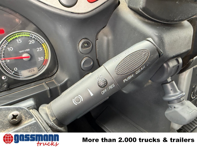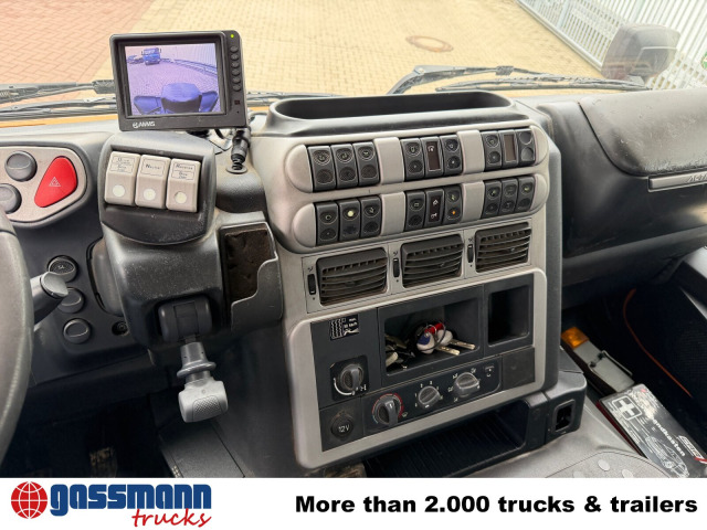 Die Motorleistung in KW beträgt 243. Das Fahrzeug wurde am 06.2008 erstmalig zugelassen. die Laufleistung beträgt 127145 Kilometer. Die Außenfarbe ist Orange. Der Hubraum des Motors beträgt 7790 cm³. 14700kg Nutzlast kann transportiert werden. Das Gesamtgewicht beträgt 26000 Kg. Es sind 2 Sitze vorhanden. Das Fahrzeug besitzt 3 Achsen. Eine Luftfederung bietet mehr Komfort als eine klassische Dämpferfederung. Es ist ein Automatikgetriebe verbaut. Die Seitenspiegel sind elektronisch verstellbar. Nebelscheinwerfer helfen bei schlechten Sichtverhältnissen. Das Fahrzeug ist fahrtauglich.