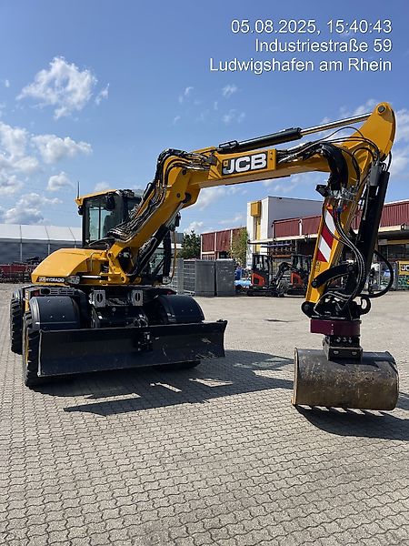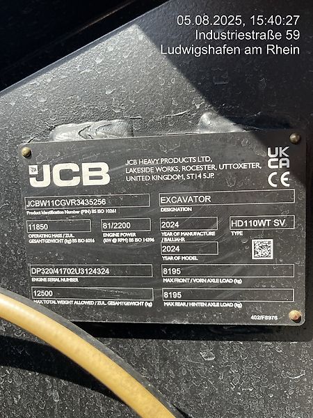 mit Verstellausleger, EU-Abgasstufe 5, JCB EcoMax 4 Zyl. Turbo-Dieselmotor, 4,8 l Hubraum u. einer Netto-Motorleistung von 81 kW (109 PS); SCR (Selektive katalyt. Reduk.) u. DPF (Dieselpartikelf.)-Technologie mit DEF (AdBlue); Verstellausleger, CommandPlus-Kabine mit Start-Stopp-Taste, Colorverglasung, Schiebefenster rechts, Scheibenwischer, 7" Farbdisplay, Radio, USB-Media, Deluxe-Sitz mit hoher Rückenlehne luftgefedert und elektrisch beheizt, Sicherheitsgurt, Sonnenblende, Heckscheibenwischer mit Waschfunktion, Rundumleuchte, Nummernschildhalter mit Beleuchtung, LiveLink Telematik, autom. Drehzahlred./Motorabschaltung; LED-Arbeitsscheinwerfer (2x Ausleger, Kabine: 2x vorne, 2x hinten, 1x Stiel); Elektrohydraul. Steuerung mit programmierb. Literleistung für Zusatzhydraulik; Betankungspumpe, Schwingungsdämpfung, Lenkrichtungsumschalter, Werkzeugsatz, Fettpresse, Fahralarm.