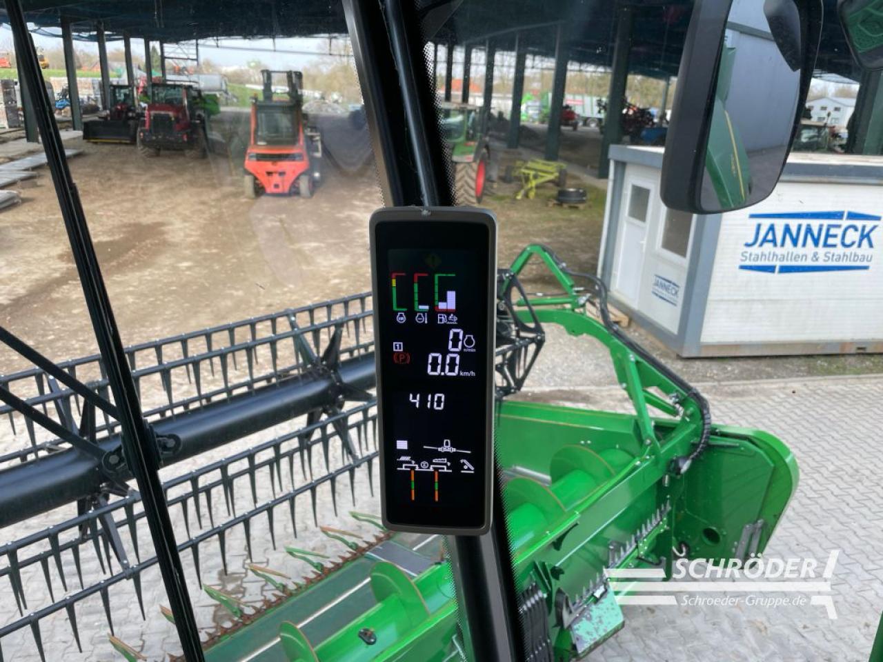 Motorstunden: 1634, Trommelstunden: 971, Boardcomputer, Harvest Lab-Unterstützung, Kamera an Auslaufrohr und AHK/Heck, Paket für zähes Getreide, normale Verschleißfestigkeit, 6-kg-Pulverlöscher mit Beschriftung auf Deutsch, Premium-Kabine, Premium-Radio, Drehbarer Premiumsitz mit Stoffbezug, LED-Beleuchtungspaket und Leuchten zur Schnitthöhenkontrolle, Generation 4 CommandCenter mit 10 Zoll Display / 4600 Prozessor, Auto Trac-Vorbereitung Ohne Ohne StarFire-Empfänger, CommandCenter Premium-Aktivierung, Aufwertung auf JDLink Connect für ein Jahr, Active Yield PLUS Ertrags- und Feuchtigkeitssensoren Hochleistungs-Neigungszylinder,, drehmomentstarker Antrieb, Rotor mit variablem Erntegutfluss, Reinigungssystem Dyna-Flo Plus Plus, Getreide-Dreschkorb, Korntransportsystem mit normaler Verschleißfestigkeit, Elektrisch klappbare Korntankabdeckungen Elektrisch klappbare Entleerschnecke, 6,9 m, Premium Strohmanagement Advanced PowerCast, ProDrive-Getriebe 25km/h, Mähdrescher mit Vorbereitung für Raupenlaufwerk 26" (MW!) VF620/70R26 CFO 173A8 TL CEREXBIB, Angetriebene Hinterachse, Zweigang-Allradantrieb, Halbautomatische Anhängekupplung ohne Ausnahmegenehmigung nach § 70 StVZO, Waschwasserbehälter 10 l|, Bordsteinspiegel, Kamerasystem Entleerrohr, Kamerasystem Strohhaube, Kamerasystem Anhängekupplung, Ölkühler für den Schrägfördererantrieb, Densepack - eng gestaffelte Zinken für Rotor, Rundstahl-Dreschkörbe (3 Segmente), Zusatzleistungspaket SideHill, Schutzschild für Körnerschnecke und Gebläseunterseite, Zusätzlicher Korntanksensor Voll "Voll", Zwei Unterlegkeile mit Halterung, inkl. JOHN DEERE Schneidwerk Premuim Flow 730, Arbeitsbreite: 9,00 m, inkl. 1 Rapstrennmesser, Bandschneidwerk, Hinweis: Gebrauchtmaschinen verkaufen wir ausschließlich an Gewerbetreibende und ohne Garantie, Preis gilt für vorhandenen Zustand. Angebot freibleibend. Irrtümer und Zwischenverkauf vorbehalten.