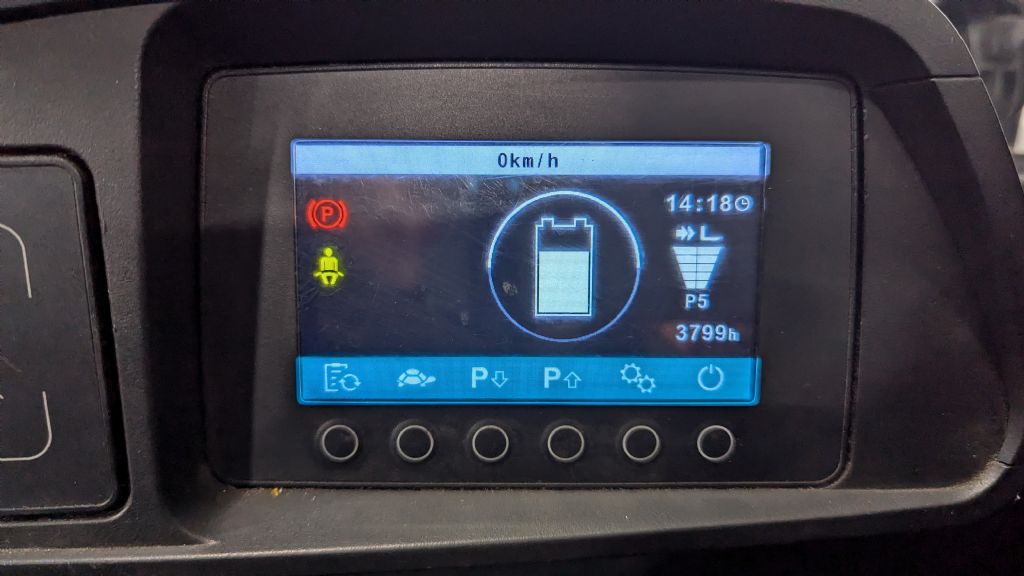 | Sonderausstattung Beschreibung | 1-Pedal Bedienung, Joystick (Duo-Pilot), Multi-Color Display, Comfort-Sitz, elektrische Lenkung, elektrische Bremse, Blitzleuchte, FloorSpot hinten und vorne, LED-Arbeitsscheinwerfer, Rückfahrwarner, Hinterreifen neu, Batterie kann auf Wunsch (gegen Aufpreis) regeneriert werden |