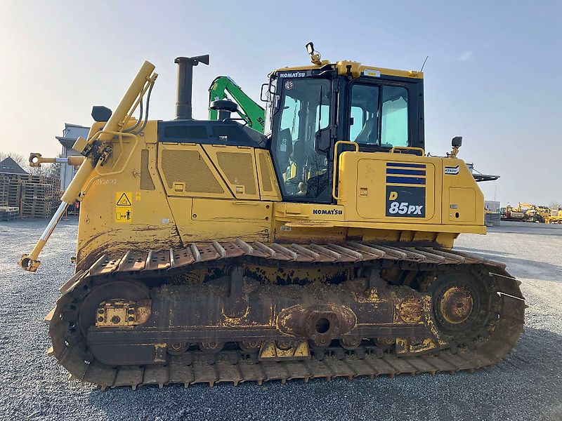 PLANIERRAUPE KOMATSU D 85 PX-18 SPACE CAB, ROPS/FOPS ÜBERDRUCKKABINE MIT ÖLGEDÄMPFTEN FEDERELEMENTEN ELEK. INSTRUMENTENBRETT MIT FAHRERIDENT. SYSTEM, RADIO AM/FM MIT LAUTSPRECHER UND ANTENNE, 12V STROMANSCHLUß (2X), 24V STROMANSCHLUß,KLIMAANLAGE INNENSPIEGEL, HINTERE SONNENBLENDE, BEHEIZBARER U.LUFTGEFEDERTER FAHRERSITZ MIT LENDENWIRBELSTÜTZE,HOHER RÜCKENLEHNE EINSTELLBAREN ARMLEHNEN/SICHERHEITSGURT ZUSÄTZLICHE ARBEITSSCHEINWERFER(JE 2X KABINE VORN+HINTEN+2XMOTORHAUBE+1XTANK) JOYSTICK MIT PCCS (PALM CONTROL COMMAND SYSTEM), FÜR FAHRANTRIEB 1-HEBELBEDIENUNG FÜR SCHILDBEWEGUNGEN (PPC), HUBZYLINDER SCHILD HYDRAULIK FÜR 1-ZAHN-HECKAUFREIßER UND TILT-DOZER, WANDLERGETRIEBE,3-ELEMENT, WASSERGEKÜHLT,PLANETENGETRIEBE HYDR. BETÄTIGTE MEHRSCHEIBENKUPPLUNG, F3L-R3L SCHALTUNG, HSS-LENKUNG, ZUGMAUL, ZUGHAKEN VORN TANK UND MOTORHAUBE ABSCHLIEßBAR AKUSTISCHE RÜCKFAHRWARNANLAGE VERSTÄRKTE HINTERE ABDECKUNG UND HD KÜHLERGRILL,WASSERABSCHEIDER, KOMTRAX 3G BATTERIEHAUPTSCHALTER RÜCKBLICKKAMERA IN FARBE AUTOMATISCHE LEERLAUFABSCHALTUNG HD-LAUFWERK,ÖLGESCHMIERTE KETTENSTR. CE-KONFORMITÄT BRUSTSCHILD ANLASSER (7,5 KW) (Z) LAUFROLLENSCHUTZ MITTE/ENDE (Z) 910 MM EINSTEG-BODENPLATTEN (Z) NATO-STECKDOSE AN BATTERIEKASTEN, RÜCKFAHRALARM BREIT-BAND-SOUND BBS-97 SCHNARRE SCHÜRZE AM SCHILD (ERHÖHUNG UM 200 MM) ECKBLECHE AM SCHILD RECHTS/LINKS