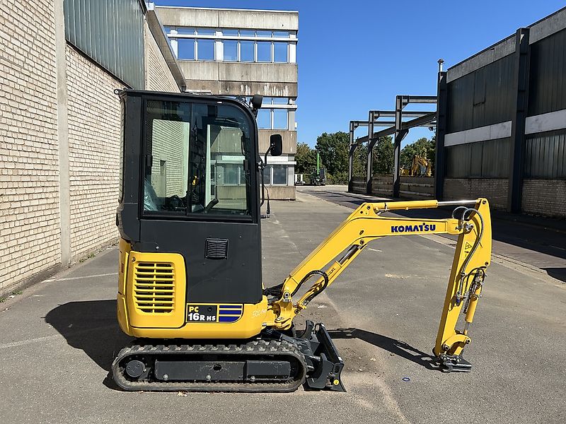 MINIBAGGER KOMATSU PC 16 R-3 HS (EU-5) KABINE + HEIZUNG + 1.LEIT. PROP. EPC 2 FAHRSTUFEN MIT AUTOMATISCHER REGELUNG (AUTO-SHIFT-DOWN) CLOSED-LOAD-SENSING-SYSTEM ZWEI-WEGE-ZUSATZHYDRAULIK BIS AUSLEGER, UMSCHALTBAR AUF HAMMERBETRIEB PLANIERABSTÜTZSCHILD ARBEITSSCHEINWERFER AM AUSLEGER HYDR. VERSTELLBARER UNTERWAGEN (HS) SCHWENKAUSLEGER, SCHUTZABDECKUNG FÜR AUSLEGER-HUBZYLINDER AKUSTISCHER FAHRALARM CE-KONFORMITÄT 1.760 MM MONOBLOCKAUSLEGER 1.215 MM LÖFFELSTIEL +HYD. KREISLAUF STANDARD GEGENGEWICHT GEFEDERTER FAHRERSITZ MIT 2SICHERHEITS- GURT KRAFT-/SCHMIERSTOFFE STD GUMMIKETTE (SHORT PITCH) FUßPEDAL 2 LATERIAL SPIEGEL ABSPERRHÄHNE FÜR LÖFFELZYLINDER SCHNELLWECHSELPLATTE MS 01, MECH. MIT LASTHAKEN C201
