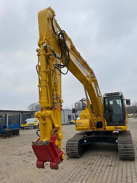 RAUPENBAGGER KOMATSU PC 210LCI-11 6-ZYLINDER KOMATSU-MOTOR, 123 KW BETRIEBSGEWICHT: 22,990 TO. VERSTÄRKTE CPACE CAB KABINE MIT ÜBER- DRUCK U.VIBRATIONSGEDÄMPFTER KABINENLAG. STANDARD FAHRERSITZ 2.990 MM LÖFFELSTIEL MONOBLOCKAUSLEGER HCU C 600 MM DREISTEG-BODENPLATTEN SONDERLACKIERUNG SCHEIBENWISCHER ZENTRALSCHMIERANLAGE BEKA-MAX SCHNELLWECHSELPLATTE HS 21, HYDR. MIT LASTHAKEN C210 Grabenräumlöffel 200CM MS21 (RESC)