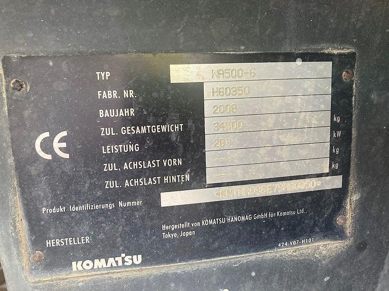 RADLADER KOMATSU WA 500-6 - VERSION B - 6-ZYLINDER KOMATSU-MOTOR, 353 PS BETRIEBSGEWICHT: 32,5 TO. AUTOMATIKGETRIEBE MIT ELEKTRONISCH GESTEUERTER MODULATION (ECMV) HIGH POWER DREHMOMENTWANDLER SPACECAB, GERÄUMIGES GROßMASCHINEN- FAHRERHAUS MIT INTEGRIERTEM ROPS/FOPS- RAHMEN, FRISCHLUFTANLAGE MIT PARTIKEL- FILTERUNG, KOMTRAX TM, KLIMAANLAGE,KÜHL- UND WÄRMEFACH, STEREO-CD-RADIO KLIMAANLAGE FAHRERSITZ, LUFTGEFEDERT MIT SITZHEIZUNG EMMS-EQUIPMENT MANAGEMENT MONITORING SYSTEM, MASCHINENÜBERWACHUNGSSYSTEM MIT DATENANALYSE-MONITOR 2-FACH VERSTELLBARE LENKSÄULE LOAD-SENSING HYDRAULIK, VERSTELLPUMPEN HUBENDABSCHALTUNG, ZWEISTUFIGE HALBAUTO- MATISCHE GRABWINKELEINSTELLUNG ZENTRALSCHMIERANLAGE, HEAVY-DUTIY MIT FEHLER-DIAGNOSE, AUSSCHWENKBARER UMKEHRLÜFTER, VANDALISMUSSCHUTZ CE-KONFORM STANDARD-HUBGERÜST STANDARD-ACHSEN DREHMOMENTWANDLER M. WANDLERÜBERBRÜCKUNG STANDARD-LENKUNG STANDARD GEGENGEWICHT DACHRELING FÜR ZUSÄTZLICHE ARBEITS- SCHEINWERFER ZUSÄTZLICHE ARBEITSSCHEINWERFER TURBO II BEFÜLLZYLINDER FÜR ZENTRALSCHMIERANLAGE 12-V-STECKDOSE VEI WÄGEEINRICHTUNG MILLENIUM, GEEICHT MIT DRUCKER BEREIFUNG 29.5 R 25 L5 BKT + EARTH MAX XLDD2 5,9 CBM SCHAUFEL, 3.460 MM, MIT UNTER- SCHRAUBMESSER