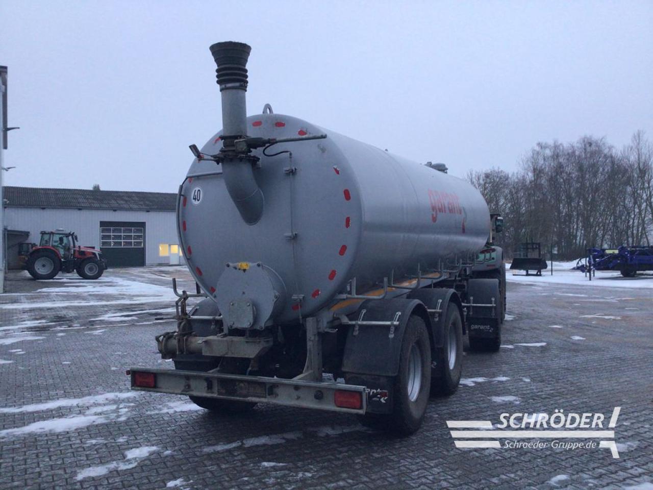 Behältergröße: 27.620 l, Behältermaße: Ø 2.100mm,, zylindrische Länge 7.700 mm, Wandstärke 5 mm, 4 Schwallwände, Behälter mit 2K- Epoxidharz Innenbeschichtung, Lackierung Weißaluminium, RAL 9006, starre Zugeinrichtung mit angeschraubtem Zugkopf Scharmüller K80, starrer Unterfahrschutz, 2 Bremsachsen BPW von 10.000 kg, Achsvierkant 150x150, Bremstrommel 410x180, Nachlauflenkachse, 2-Leiter Druckluftbremsanlage mit ALB, LED-Dreikammerbeleuchtung im Unterfahrschutz, seitliche Begrenzungsleuchten links und rechts, TÜV-Abnahme 40 km/h mit Gutachten, Bereifung: 560/60 R 22.5 Aeolus AE74165D, Kunststoff-Kotflügel für Bereifungen 560er, 2 LED-Arbeitsscheinwerfer an der Heckseite des Behälters, Jurop Vakuumkompressor PNR 155R, WW-Gelenkwelle Original Walterscheid PWE 480, Profi-Befüllhilfe NW 200 vorne unter dem Behälter, Schwenkelement hinten unter dem Behälter NW 150, Keilflanschschieber 6 Zoll mit Handhebel und Schnellkuppler NW 150 vorne links, Keilflanschschieber 6 Zoll mit Handhebel und Schnellkuppler NW 150 vorne rechts, 3x Blinddeckel verzinkt, für Schnellkuppler 6', Halterung für Nachrüstung Saugrüssel mit 1 Drehgelenk vorne links mit Ansaugmöglichkeit, Andockvorrichtung NW 200 hinten oben , Saugschlauch Ø 150 mm, 5 m, mit V- und M-Teil, , Nachrüstung hydraulisches Rührwerk im Mannlochdeckel hinten, Flügeldurchmesser 450mm
