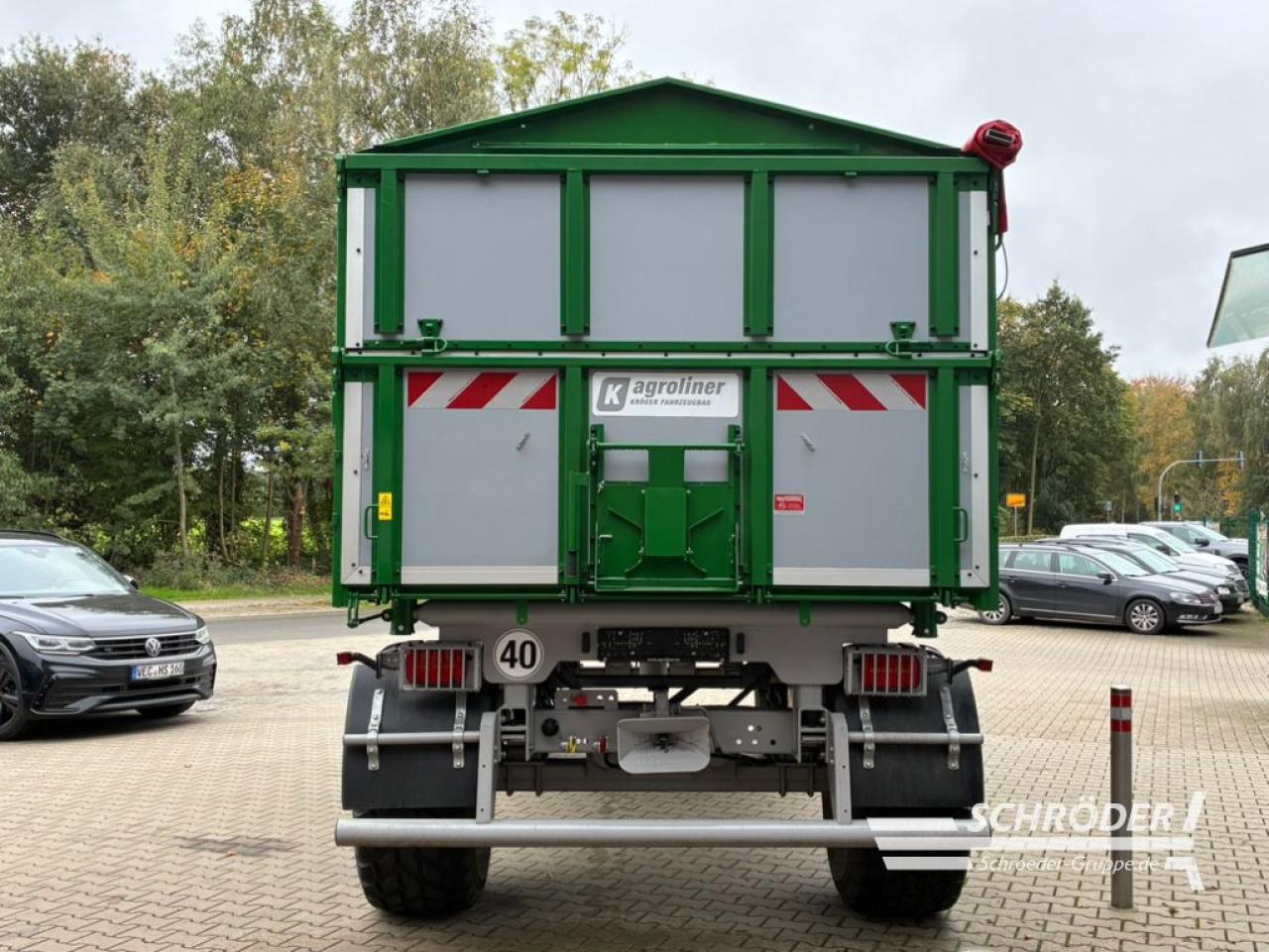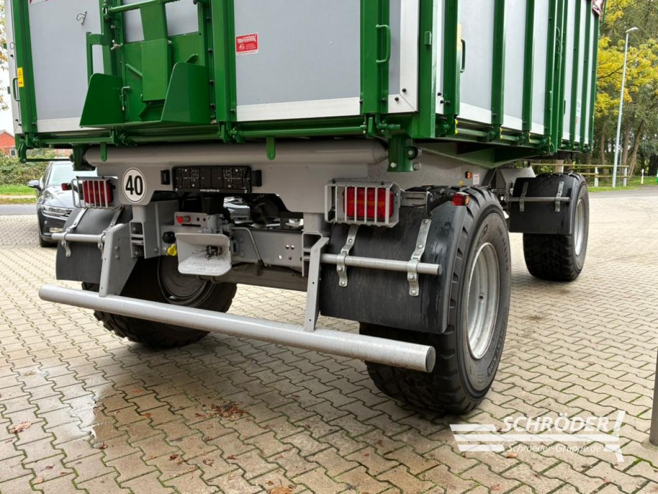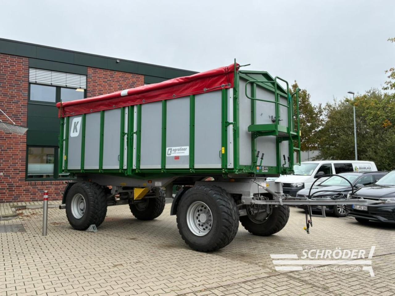 Serienausstattung:, Bereifung: 385/65 R22.5 werkserneuert auf Mittelstegfelgen 80 km/h, ADR-Schrägrollenlager-Achsen, 11,3 t Achslast (105 km/h), 2.050 mm Spurbreite,, ohne ABS bis 60 km/h, Radbremse 406 x 120 mm, 130 mm Achsvierkant, 18 t Parabelfederung 2-lagig 100 mm breit, zugelassen bis 105 km/h, Überlastschutz für hintere Parabelfedern, Drehschemellenkung mit Kugellenkkranz und typengeprüfter Dreieckzuggabel 1.900 mm lang,, Höheneinstellung sowie Zuggabelentlastung, Chassisrahmen: Stahl-Schweißkonstruktion, Hauptträger Doppel - T, Zweileitungs-Betriebs-Bremsanlage mit automatisch-lastabhängiger Bremskraftregelung (ALB),, 4x Membranbremszylinder; Spindelfeststellbremse für Hinterachse, 3-Seiten Kippwerk, hydraulische Mehrkolbenpresse mit kardanischer Aufhängung, 1-Leitungs-System,, Kugelkipplager mit Niederhalter hinten; zwei unverwechselbare Steckbolzen,, hydraulischen Hubbegrenzer; Sicherungsseil, Kipprahmen: Profilstahl-Schweißkonstruktion, 4 mm Stahlblechboden, Vorderwand feststehend aus finn. Kombi-Multiplexplatte 18 mm, WBP verleimt,, im Bordwandbereich Verwendung von nichtrostenden VA-Schrauben, feststehende Eckrungen,, Trittstufe an der Zuggabel, ergonomische Aufstiegsleiter mit Laufsteg und Unfallschutzbügel gemäß, UVV Richtlinien, Klapptritte außen und an der Innenseite der Vorderwand, Seitenbordwände finn. Kombi-Multiplexplatte wie Vorderwand, Platte eingefasst in Alu-Profil (mit, integrierter Wasserableitrinne) mit robuster, austauschbarer Gummidichtung, je zwei Seitenbordwände, horizontale Teilung, feststehende Mittelrungen mit zwei abnehmbaren Verbindungsrohren,, geteilte Zentraluntenentriegelung, Untenentriegelungshebel vorne und hinten mit Übertotpunktspanner, optimal ausgelegt für die Zurüstung einer automatischen Bordwandfernentriegelung, Rückwand: Grundaufbau wie Seitenbordwand, 1x Kornschieber mittig (480 x 290 mm) mit Hebelbetätigung, (links) und abnehmbarer Auslaufschurre, feststehende Eckrungen, Zentraluntenentriegelung,, Untenentriegelungshebel links mit Übertotpunktspanner, 12-Volt-Anlage nach Vorschriften der StVZO mit 7-poligem Verbindungskabel, Dreieckrückstrahler und, gelbe Seitenreflektoren, 3-Kammerleuchten (gummigelagert), Kennzeichenleuchten, Positionsleuchten, stabiler Unterfahrschutz, Kennzeichenhalterung, Unterlegkeil mit Halter, Kunststoffkotflügel hinten, Parkdosen für alle Anschlüsse auf der Zuggabel, Schutzkappen auf Schraubverbindungen,, Ruhepunktauflagen für Kippbrücke zur Geräuschdämmung im Fahrbetrieb, Lackierung: Fahrzeug gestrahlt mit Stahlschrot und zusätzlich entfettet, Dickschichtgrundierung, Versiegelung besonders korrosionsgefährdeter Bereiche mittels Karosserieabdichtungsmasse,, Decklackierung in deutschen Qualitäts-Zwei-Komponentenlackfarben, Aufbau: Kröger-Grün, Platten = beidseitig "grün" filmbeschichtet, nicht UV-beständig, Fahrgestell: Kröger-Rot, , Technische Daten:, Leergewicht: ca. 4.100 kg (in Grundausstattung), Nutzlast: ca. 13.900 kg, Plattformhöhe: ca. 1.330 mm (in Grundausstattung), Ölbedarf: ca. 19,9 l, Laderaummaße außen: ca. 5.300 mm L x 2.550 mm B x 1.300 mm H, Laderaummaße innen: ca. 5.235 mm L x 2.420 mm B x 1.300 mm H, Palettenbreite auch zwischen Mittel- und Eckrungen!, , Zusatzausstattung:, LIGHT-Version gewichtsoptimierte Ausführung, Gewichtsersparnis bis zu 150 kg, Bodenblech 3 mm anstatt 4 mm, kein Stabilitätsverlust durch Verwendung hochfester Spezialstähle, Bordwände mit Kunststoffplatten 18 mm stark, Bordwandhöhe 1.600 mm, Farbe: RAL 7004 Signalgrau, Bedienung der Untenentriegelung für hintere Seitenborfwände rechts und links durch separate, Übertotpunktspanner an der Stirnwand, seitliche Untenentriegelungshaken, beidseitig mit Gewindebuchsen, Vorrichtung zur Aufnahme abnehmbare Kippbrückenverlängerung (Schütte) hinten,, gesamte Fahrzeugbreite (2.480 mm B x 350 mm L) OHNE Schütte, Aufsteckdreiecke vorne und hinten (300 mm) mit Mitteldreieck und abklappbarem, VERSTÄRKTEM DÜNNWANDIGEM ALU-Spriegelrohr, Durchmesser 70 mm, Wandung 4 mm, rote Abdeckplane mit Alu-Rollbrett, Handkurbel und seitlich, abnehmbaren Anschlagstützen auf der RECHTEN Seite, Rückwand horizontal geteilt mit Gummiabdichtsystem, Mittelrunge komplett abklappbar und herausnehmbar nur einseitig auf der LINKEN Seite, Seitenbordwände zusätzlich als Portal von der Mitte ausgehend nach außen aufschwenkbar inklusive, einstellbarer Exzenterschrauben, auf der LINKEN Seite, Anhängerkupplung, automatisch inklusive Licht-, Luft- und Hydraulikanschluss für 2. Anhänger, Unterfahrschutz aus Rundrohr mit nach oben versetzter Beleuchtungseinrichtung, Kunststoffkotflügel Vorderachse, Seitenmarkierungsleuchten (LED), Positions- und Kennzeichenleuchten (LED), 3-Kammer-Rückleuchten eckig (LED), inklusive Blinkerausfallkontrolle, Schutzgitter für Rückleuchten - schraubbar, Betätigung Kippwerk 2. Anhänger mit separatem Hydraulikanschluss + Absperrhahn zur Zugmaschine, Bereifung: 500/60 R22.5 NOKIAN Country King, Sonderlackierung Chassis, Farbe: RAL 7004 Signalgrau, Gutachten für 40 km/h Zulassung