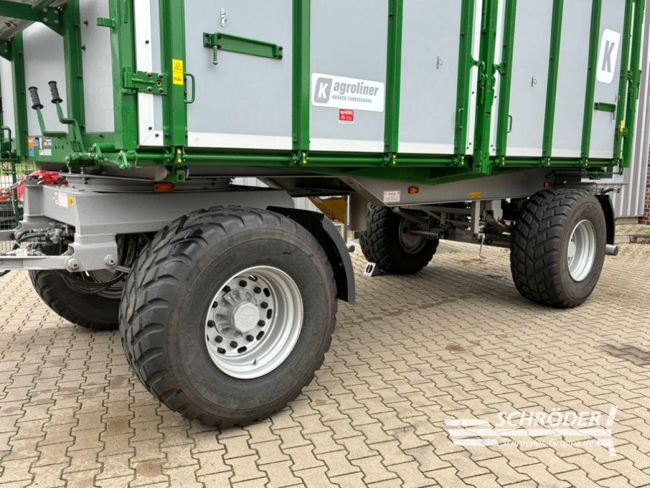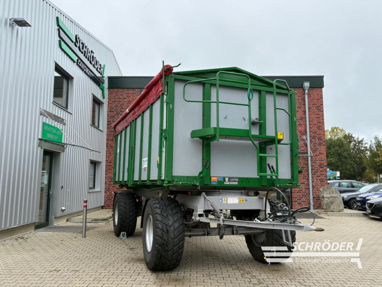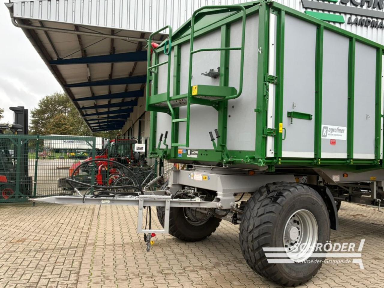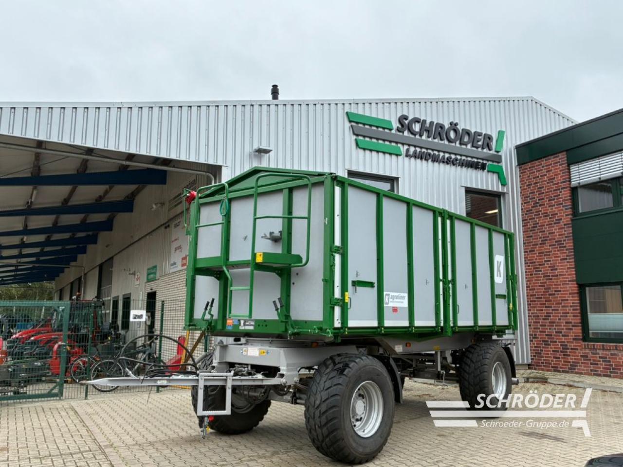 Serienausstattung:, Bereifung: 385/65 R22.5 werkserneuert auf Mittelstegfelgen 80 km/h, ADR-Schrägrollenlager-Achsen, 11,3 t Achslast (105 km/h), 2.050 mm Spurbreite,, ohne ABS bis 60 km/h, Radbremse 406 x 120 mm, 130 mm Achsvierkant, 18 t Parabelfederung 2-lagig 100 mm breit, zugelassen bis 105 km/h, Überlastschutz für hintere Parabelfedern, Drehschemellenkung mit Kugellenkkranz und typengeprüfter Dreieckzuggabel 1.900 mm lang,, Höheneinstellung sowie Zuggabelentlastung, Chassisrahmen: Stahl-Schweißkonstruktion, Hauptträger Doppel - T, Zweileitungs-Betriebs-Bremsanlage mit automatisch-lastabhängiger Bremskraftregelung (ALB),, 4x Membranbremszylinder; Spindelfeststellbremse für Hinterachse, 3-Seiten Kippwerk, hydraulische Mehrkolbenpresse mit kardanischer Aufhängung, 1-Leitungs-System,, Kugelkipplager mit Niederhalter hinten; zwei unverwechselbare Steckbolzen,, hydraulischen Hubbegrenzer; Sicherungsseil, Kipprahmen: Profilstahl-Schweißkonstruktion, 4 mm Stahlblechboden, Vorderwand feststehend aus finn. Kombi-Multiplexplatte 18 mm, WBP verleimt,, im Bordwandbereich Verwendung von nichtrostenden VA-Schrauben, feststehende Eckrungen,, Trittstufe an der Zuggabel, ergonomische Aufstiegsleiter mit Laufsteg und Unfallschutzbügel gemäß, UVV Richtlinien, Klapptritte außen und an der Innenseite der Vorderwand, Seitenbordwände finn. Kombi-Multiplexplatte wie Vorderwand, Platte eingefasst in Alu-Profil (mit, integrierter Wasserableitrinne) mit robuster, austauschbarer Gummidichtung, je zwei Seitenbordwände, horizontale Teilung, feststehende Mittelrungen mit zwei abnehmbaren Verbindungsrohren,, geteilte Zentraluntenentriegelung, Untenentriegelungshebel vorne und hinten mit Übertotpunktspanner, optimal ausgelegt für die Zurüstung einer automatischen Bordwandfernentriegelung, Rückwand: Grundaufbau wie Seitenbordwand, 1x Kornschieber mittig (480 x 290 mm) mit Hebelbetätigung, (links) und abnehmbarer Auslaufschurre, feststehende Eckrungen, Zentraluntenentriegelung,, Untenentriegelungshebel links mit Übertotpunktspanner, 12-Volt-Anlage nach Vorschriften der StVZO mit 7-poligem Verbindungskabel, Dreieckrückstrahler und, gelbe Seitenreflektoren, 3-Kammerleuchten (gummigelagert), Kennzeichenleuchten, Positionsleuchten, stabiler Unterfahrschutz, Kennzeichenhalterung, Unterlegkeil mit Halter, Kunststoffkotflügel hinten, Parkdosen für alle Anschlüsse auf der Zuggabel, Schutzkappen auf Schraubverbindungen,, Ruhepunktauflagen für Kippbrücke zur Geräuschdämmung im Fahrbetrieb, Lackierung: Fahrzeug gestrahlt mit Stahlschrot und zusätzlich entfettet, Dickschichtgrundierung, Versiegelung besonders korrosionsgefährdeter Bereiche mittels Karosserieabdichtungsmasse,, Decklackierung in deutschen Qualitäts-Zwei-Komponentenlackfarben, Aufbau: Kröger-Grün, Platten = beidseitig "grün" filmbeschichtet, nicht UV-beständig, Fahrgestell: Kröger-Rot, , Technische Daten:, Leergewicht: ca. 4.100 kg (in Grundausstattung), Nutzlast: ca. 13.900 kg, Plattformhöhe: ca. 1.330 mm (in Grundausstattung), Ölbedarf: ca. 19,9 l, Laderaummaße außen: ca. 5.300 mm L x 2.550 mm B x 1.300 mm H, Laderaummaße innen: ca. 5.235 mm L x 2.420 mm B x 1.300 mm H, Palettenbreite auch zwischen Mittel- und Eckrungen!, , Zusatzausstattung:, LIGHT-Version gewichtsoptimierte Ausführung, Gewichtsersparnis bis zu 150 kg, Bodenblech 3 mm anstatt 4 mm, kein Stabilitätsverlust durch Verwendung hochfester Spezialstähle, Bordwände mit Kunststoffplatten 18 mm stark, Bordwandhöhe 1.600 mm, Farbe: RAL 7004 Signalgrau, Bedienung der Untenentriegelung für hintere Seitenborfwände rechts und links durch separate, Übertotpunktspanner an der Stirnwand, seitliche Untenentriegelungshaken, beidseitig mit Gewindebuchsen, Vorrichtung zur Aufnahme abnehmbare Kippbrückenverlängerung (Schütte) hinten,, gesamte Fahrzeugbreite (2.480 mm B x 350 mm L) OHNE Schütte, Aufsteckdreiecke vorne und hinten (300 mm) mit Mitteldreieck und abklappbarem, VERSTÄRKTEM DÜNNWANDIGEM ALU-Spriegelrohr, Durchmesser 70 mm, Wandung 4 mm, rote Abdeckplane mit Alu-Rollbrett, Handkurbel und seitlich, abnehmbaren Anschlagstützen auf der RECHTEN Seite, Rückwand horizontal geteilt mit Gummiabdichtsystem, Mittelrunge komplett abklappbar und herausnehmbar nur einseitig auf der LINKEN Seite, Seitenbordwände zusätzlich als Portal von der Mitte ausgehend nach außen aufschwenkbar inklusive, einstellbarer Exzenterschrauben, auf der LINKEN Seite, Anhängerkupplung, automatisch inklusive Licht-, Luft- und Hydraulikanschluss für 2. Anhänger, Unterfahrschutz aus Rundrohr mit nach oben versetzter Beleuchtungseinrichtung, Kunststoffkotflügel Vorderachse, Seitenmarkierungsleuchten (LED), Positions- und Kennzeichenleuchten (LED), 3-Kammer-Rückleuchten eckig (LED), inklusive Blinkerausfallkontrolle, Schutzgitter für Rückleuchten - schraubbar, Betätigung Kippwerk 2. Anhänger mit separatem Hydraulikanschluss + Absperrhahn zur Zugmaschine, Bereifung: 500/60 R22.5 NOKIAN Country King, Sonderlackierung Chassis, Farbe: RAL 7004 Signalgrau, Gutachten für 40 km/h Zulassung