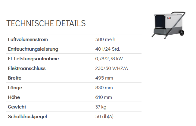 Luftentfeuchter/Bautrockner mit Zusatzheizung