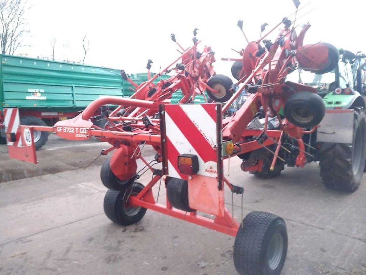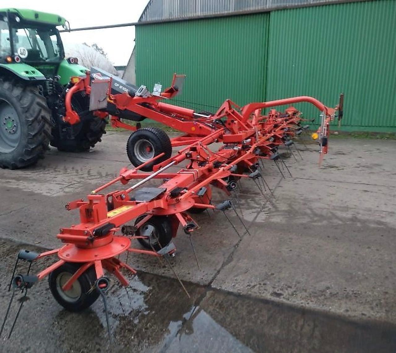 Gezogen Lenkachse Nachlauf Heckanbau Mittelschwader bis 8 60 mtr Arbeitsbreite 1 Mittelschwad 2 Kreisel 3 65 mtr 13 Zinkenarme pro Kreisel 4 Doppelzinken je Zinkenarm geschlossenes Master Drive Getriebe 3D Pendelaufhängung 4 Räder pro Kreisel Tandemfahrwerk 40 km h Zulassung Gewicht ca 2 250 kg Int Nr 6809 Ausstellungsgerät zum Sonderpreis Versand ...