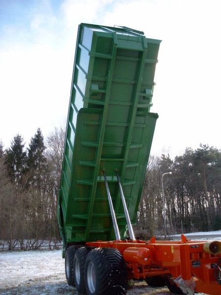 Aufbau : RAL6010, grasgrün, konische Wannne, vorne 10cm enger, Seitenwände 4mm, QSTE380TM aus einem Stück gekantet, Aufbaukrone aus RR100x80mm, Bodenbl. 5mm, S235JOH, aus einem Stück, Sichtfenster (ca.350mm x 550mm) in der Stirnwand (serienmäßig ab Aufbauhöhe 1,25m ), Heckklappe mit einem Auslaufschieber (ca 40cmx43cm), Seitenholme seitl. durchgehend verschweißt, rutschsichere Aufstiegsleiter und Trittstufe innen ( serienmäßig ab Aufbauhöhe 1,25m ), Kunststoffauflagen zwischen Chassis u. Aufbau.
